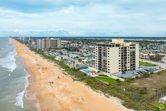 The Ormondy Condominium, a 12-story building completed in 1985, is located in the picturesque Ormond By The Sea neighborhood. With 71 units, this condominium offers a blend of modern design and coastal charm. Each floor features balconies, providing residents with stunning views of the Atlantic Ocean and the Halifax River. The building's flat roof and simple, modern design make it a distinctive presence along the coastline.