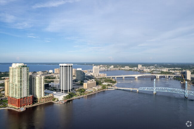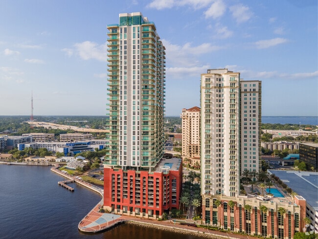 The Peninsula at St. Johns Center is a striking 37-story high-rise condominium located on the Southbank of the St. Johns River in Jacksonville, Florida. Designed with modern elegance, this building was completed in 2008 and houses 241 luxurious units. Its prominent red lower section and glass and balcony facade make it a standout structure along the waterfront, offering residents unparalleled views of the river and downtown Jacksonville. The Peninsula combines sophisticated living with a prime location, making it a coveted address in the city.