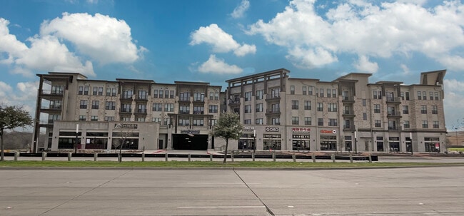 The View on Carrollton is a contemporary four-story condominium building designed by Humphreys & Partners Architects, L.P. Completed in 2022, this mixed-use development features 268 residential units above ground-floor retail spaces. Located in the leafy Palisades Point neighborhood, it offers a blend of suburban tranquility and urban convenience. The building's flat roof, large windows, and combination of stone and siding facades contribute to its modern aesthetic, making it a standout in the area.