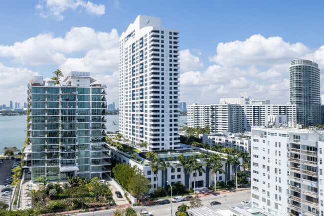 The Waverly at South Beach, a striking 35-story tower designed by renowned architectural firm Arquitectonica, stands as a prominent fixture in Miami Beach's West Avenue neighborhood. Completed in 2001, this luxury condominium offers 399 residences with sweeping views of Biscayne Bay, the Atlantic Ocean, and the Miami skyline. The building's curved facade and prominent balconies create a distinctive silhouette against the South Beach skyline, embodying the area's modern architectural aesthetic while providing residents with an unparalleled living experience just steps from the vibrant heart of Miami Beach.