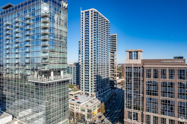 Nearby attractions and amenities include the World of Coke, Children’s Museum of Atlanta, the Chick-fil-A College Football of Fame, Woodruff Park, and the Georgia Aquarium. This happening part of town offers modern, upscale apartments with luxurious amenities and sweeping views of the city.
