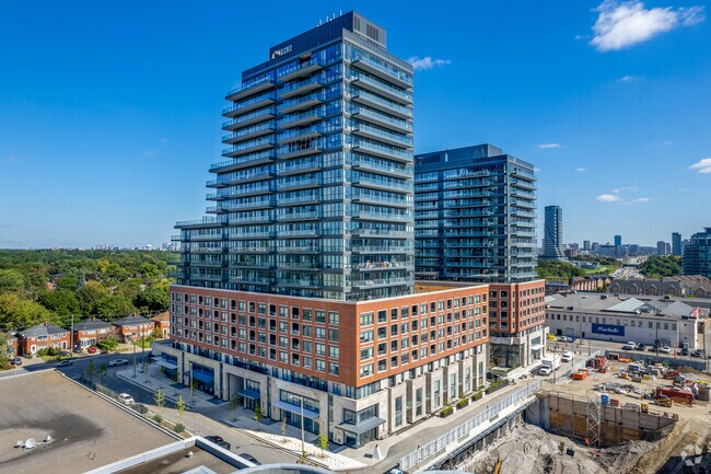 Upper East Village Condos is near Billy Bishop Toronto City, located 18.1 kilometers or 21 minutes away, and Toronto Pearson International, located 32.8 kilometers or 40 minutes away.
