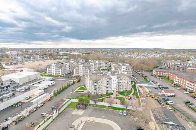 Wellington Woods, completed in 2022, stands as a contemporary addition to the Wellington neighborhood of Medford. This four-story condominium complex, developed by North Shore Residential Development, Inc., houses 200 units, offering residents a blend of suburban tranquility and urban convenience. Located just 15 minutes from Boston, Wellington Woods provides easy access to the city while maintaining a connection to nature, with the Malden and Mystic rivers nearby. The building's design incorporates a mix of siding and stone veneer, featuring gabled roofs and private balconies that complement the area's residential character.