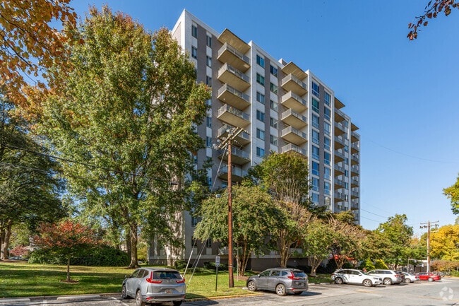 The Whitehall Condominium, completed in 1963, stands as a testament to mid-century modern design in downtown Bethesda. This 10-story high-rise houses 245 units, offering residents a blend of comfort and convenience. Situated on seven lush acres, the Whitehall provides a serene retreat within walking distance of downtown Bethesda's bustling amenities. Its prime location, equidistant from two Metro stations, makes it an ideal choice for those seeking an urban lifestyle with easy access to transportation, shopping, and dining options.