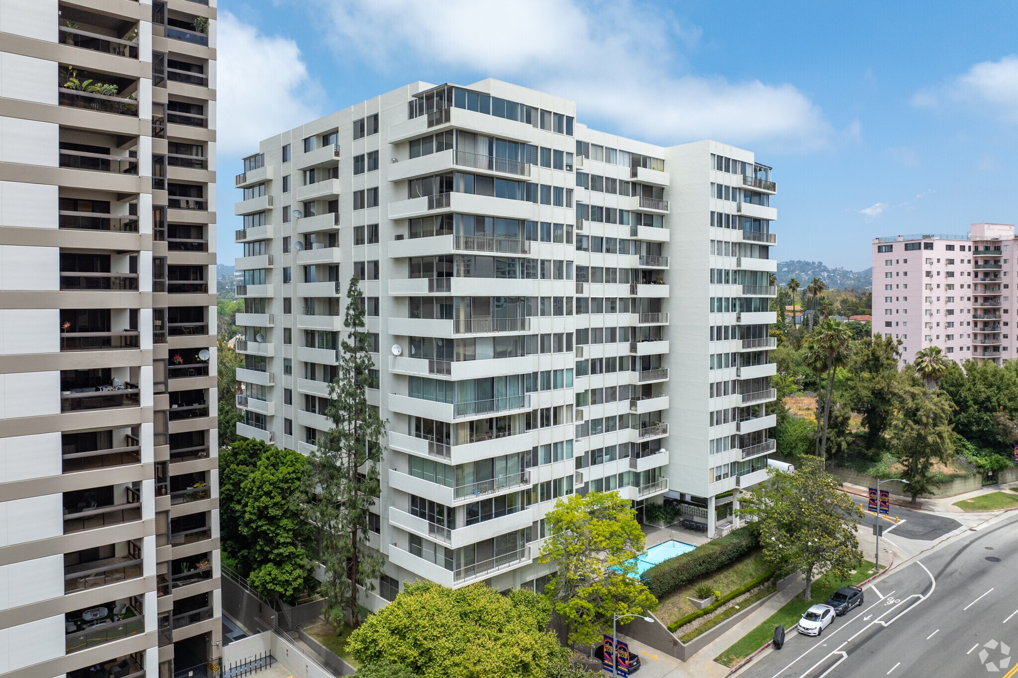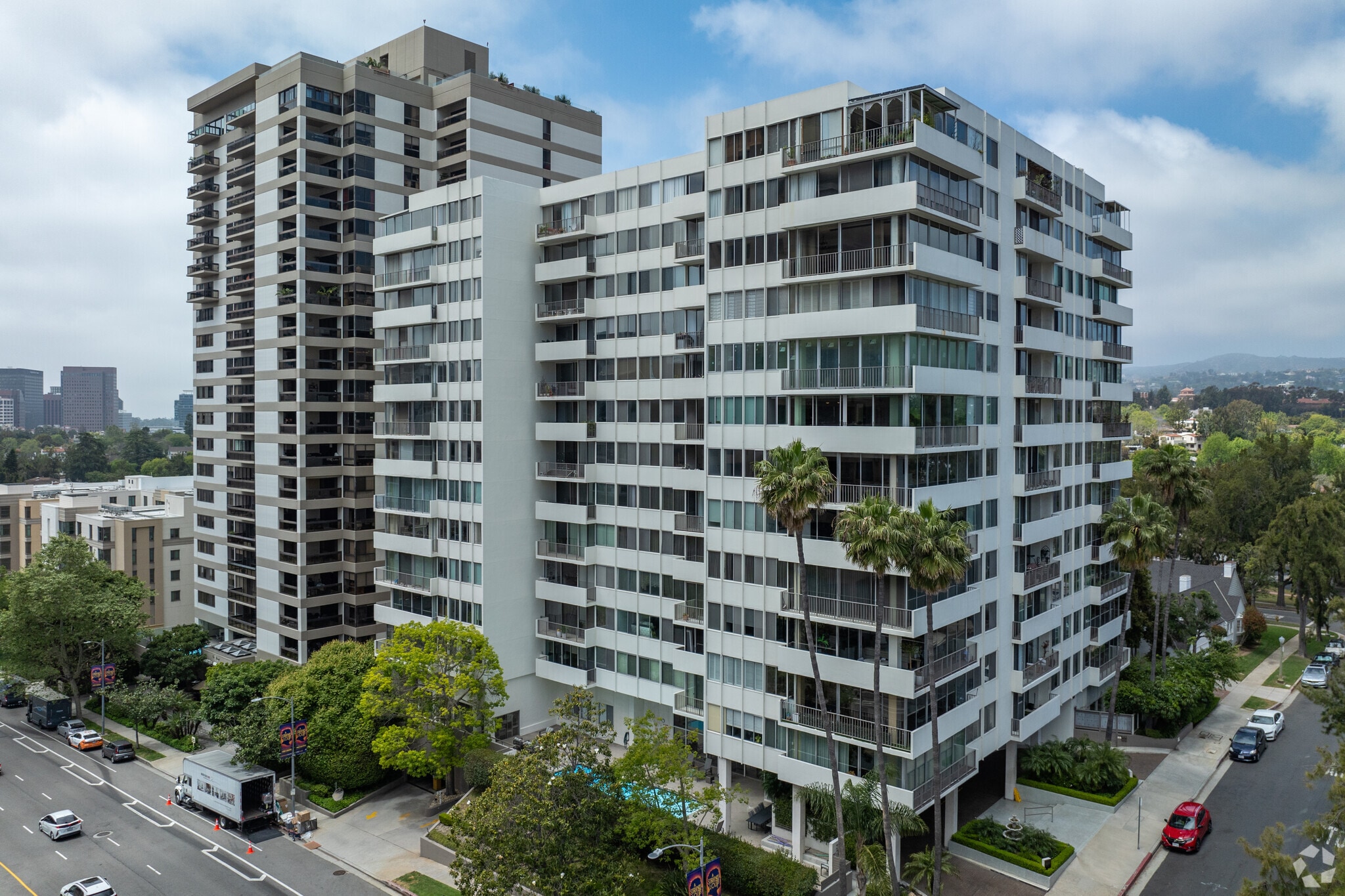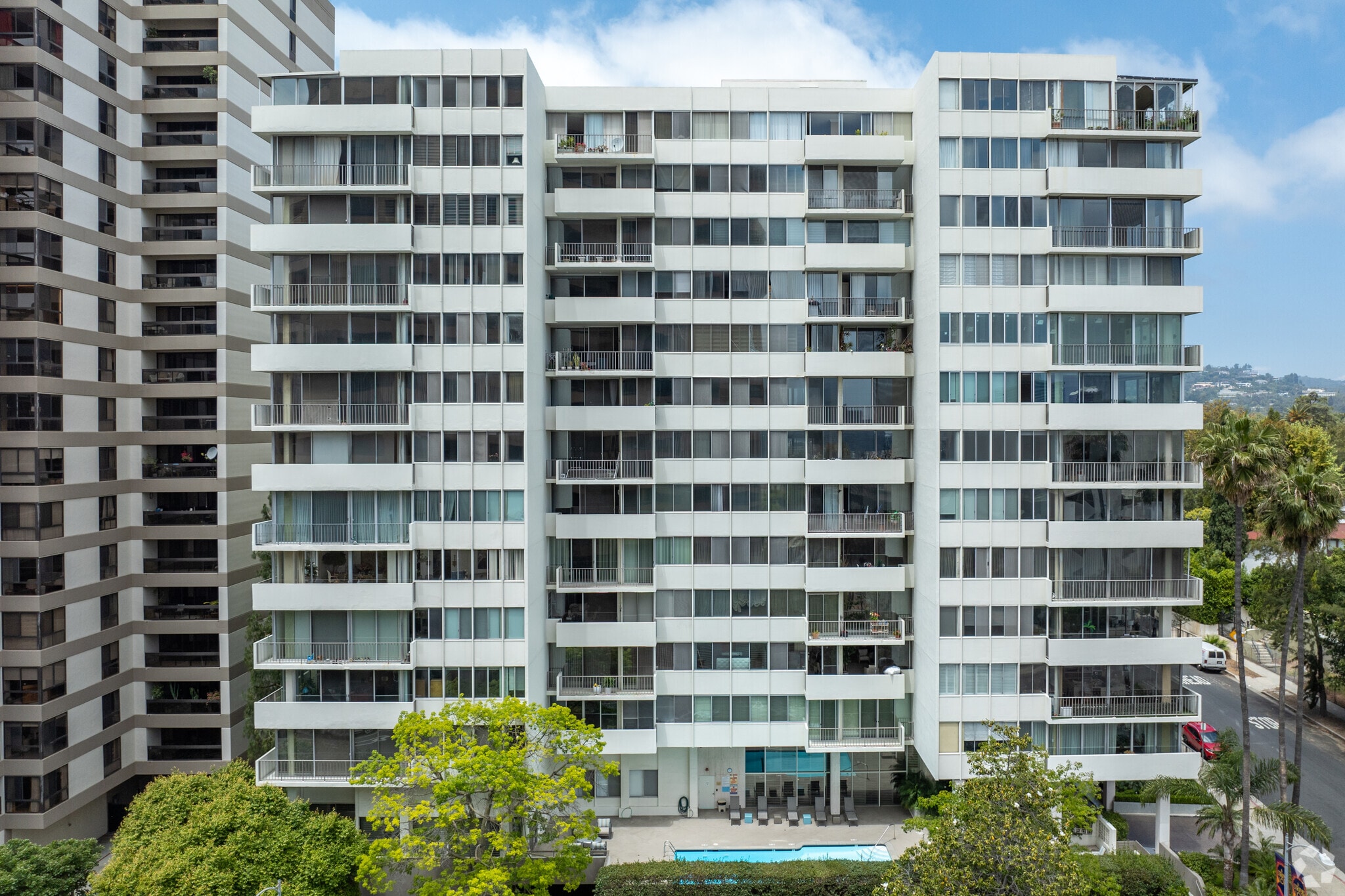 Wilshire Holmby, a 13-story condominium building, stands as a prominent fixture in the prestigious Wilshire Corridor. Completed in 1963, this modern-designed building features a symmetrical facade and a series of balconies that provide outdoor space for each of its 117 units. Located at 10433 Wilshire Blvd, the building offers residents a blend of luxury and convenience, with panoramic views of Bel Air, Holmby Hills, UCLA, and The Getty Museum.