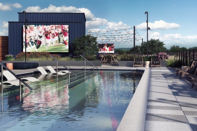 - Resort-Style Rooftop Pool with Tanning Shelf, Cabanas, and Jumbotron