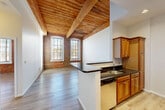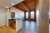 This building included all the amenities I love including covered garage, a gym and a modern layout. It also preserved many features from its mill days with high ceilings, exposed beams, huge windows and original brick walls. Noise from apartments above does creep in as the original ceilings leave little to buffer the sound. There is a train station within ten minutes walking distance. The property management is quick to respond to issues that arise and otherwise don't hassle you. It's a great place for small dogs and there is a park a few blocks away.