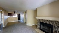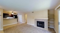 Inside a gated community, newly renovated apartment. Apartment has small kitchen and not much room for plates, cups, etc., but has granite counter tops and black/silver appliances. Built in shelves by the fireplace which holds dvds/games/books. Very nice fire place with a ledge that can fit a tv. Half hardwood floor half carpet. Perfect combination. Doors to patio from the living room. Great view of grass, picnic tables and an outside grill. Master bedroom and second bedroom are extremely close in size and not very big, so it doesn't really feel like a master bedroom, except the bathroom is in the room. Second bathroom in hall. Great ventilation. Nice neighborhood. I'd say my first apartment is a winner.