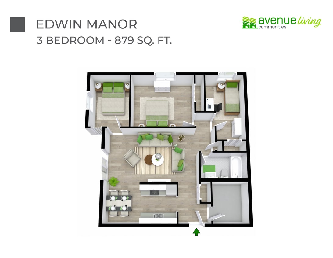 Edwin Manor has one to three-bedrooms with rent ranges from $1,133/mo. to $1,520/mo.