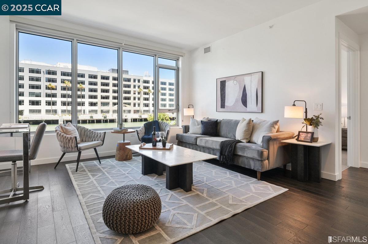 Experimente una vida privilegiada frente al mar en esta refinada residencia en One Mission Bay, donde el diseño moderno se fusiona con impresionantes vistas de Mission Creek, el parque y Oracle Park. El espacio abierto se llena de luz natural gracias a sus amplios ventanales, creando una fluidez perfecta entre el interior y el exterior. La elegante cocina está equipada con encimeras de cuarzo y electrodomésticos Gaggenau de primera calidad, incluyendo una estufa de gas de cinco quemadores y lavavajillas. Los pisos de madera noble enmarcan las áreas de estar, complementadas con calefacción central y aire acondicionado para mayor comodidad durante todo el año. El dormitorio, iluminado por el sol, ofrece tranquilas vistas al canal, mientras que la lavandería en la unidad y el estacionamiento seguro para un auto le brindan comodidad diaria. Los residentes disfrutan de una impresionante gama de comodidades, que incluyen un gimnasio de última generación, piscina climatizada al aire libre, fogatas, áreas de barbacoa, cabañas, sala de juegos, salones para residentes y portero las 24 horas. Mejore su rutina de teletrabajo con acceso a salas de conferencias privadas o una acogedora biblioteca junto a la chimenea. Todo esto en una ubicación inmejorable a solo unos pasos de restaurantes, supermercados, entretenimiento y CalTrain para un viaje diario sin problemas a South Bay.