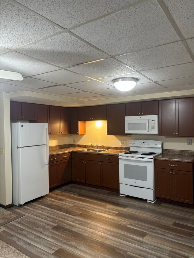 Dos habitaciones, un baño, microondas empotrado, acceso a lavadora y secadora. Pagamos el agua, la calefacción y ofrecemos internet Metronet. El inquilino solo paga la electricidad.