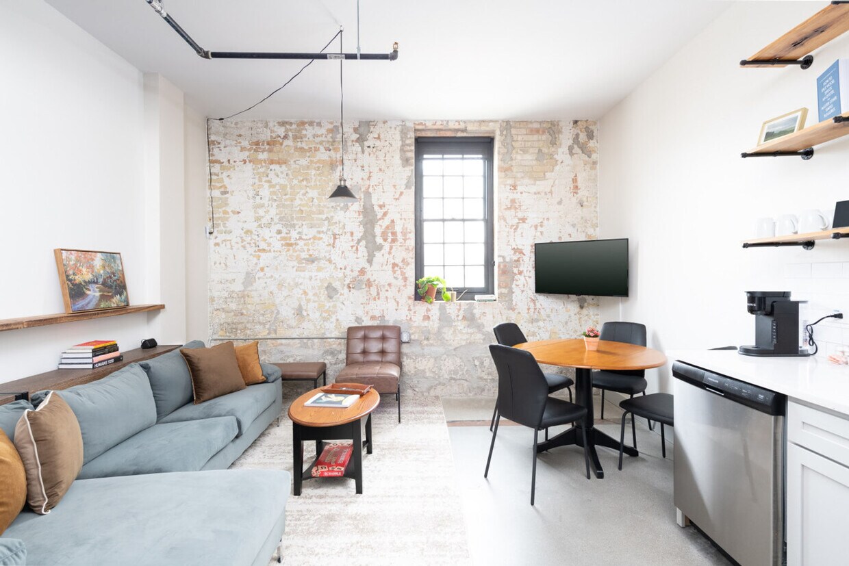 La tarifa anunciada de $2,164/mes es el precio más bajo disponible, basado en una estadía de 30 días con fecha de mudanza el 31 de marzo de 2026. Las tarifas varían según la duración de la estadía, la temporada y otros parámetros. Para conocer el precio exacto y los componentes adicionales del precio, visite nuestro sitio web e ingrese las fechas de mudanza deseadas. La tarifa se aplica cuando se factura por adelantado; puede ser mayor si se factura en múltiples pagos. Siéntase como en casa en este apartamento de 2 habitaciones ubicado en uno de los edificios más históricos de Milwaukee, que exhibe características arquitectónicas como ladrillo original de Cream City, vigas a la vista, ventanas arqueadas y vistas del horizonte de la ciudad. Ubicado en el primer piso, este apartamento privado se extiende por dos pisos a través de una escalera interior. Este apartamento tiene capacidad para cuatro personas con una cama queen en cada una de las dos habitaciones. La sala de estar compacta ofrece un sofá seccional de tamaño completo y opciones de asientos flexibles. La mesa de comedor abatible tiene capacidad para 5 personas y también funciona como espacio de trabajo. Las comodidades incluyen lavandería en el apartamento, Smart TV con Chromecast, gimnasio, sala de cine, cabinas de estudio y trabajo, y una sala de juegos con dardos, billar y bolsas. Este apartamento incluye una plaza de aparcamiento gratuita en un garaje seguro a una manzana, en el edificio de estacionamiento de la cervecería. Hay aparcamiento adicional disponible en el mismo garaje por un coste de 25 $ al día (las tarifas pueden aumentar durante eventos). Ubicado en el corazón del histórico distrito cervecero y conectado con el icónico letrero de Pabst que cruza la avenida Juneau, este apartamento se encuentra a 5 minutos a pie del Fiserv Forum por calles adoquinadas y a 5 minutos en coche del centro, Third Ward y la Universidad de Marquette. No se permite fumar en ninguna zona de las instalaciones, incluidos los espacios al aire libre, y se aplicará una multa mínima de 500 $, con posibles cargos adicionales por la reparación. El horario de silencio es después de las 22:00 h. Los huéspedes deben cubrir el coste de la sustitución de los dispositivos de acceso no devueltos, como llaves, tarjetas de acceso, llaveros o pases de aparcamiento. El garaje tiene una altura libre de 2,18 m, suficiente para la mayoría de los vehículos, pero podría no ser adecuado para vehículos más grandes, como autocaravanas o furgonetas. Incluye registro automático, wifi de alta velocidad, un espacio de trabajo exclusivo, una plancha y una cafetera Keurig. [SI]