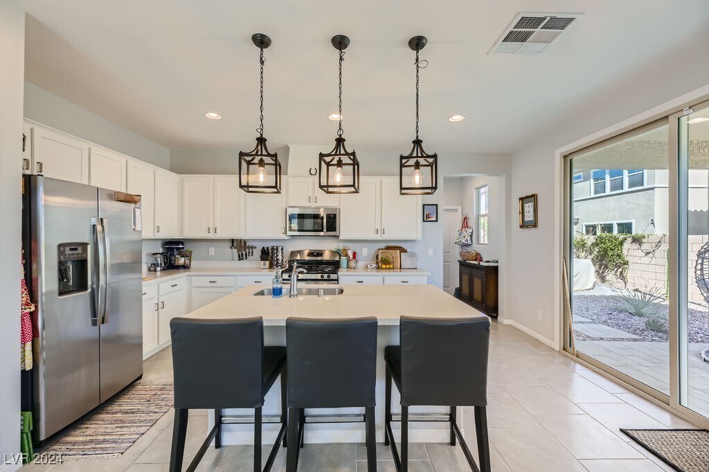 Hermosa casa de tres habitaciones y tres baños completos ubicada en la muy buscada comunidad planificada de Skye Canyon. Como inquilinos, disfrute de todo lo que Skye Canyon tiene para ofrecer, incluido el acceso a la casa club, la piscina, el gimnasio y varios parques y senderos. La casa ubicada en una calle sin salida en un vecindario cerrado cuenta con una amplia cocina con encimeras de granito, electrodomésticos de acero inoxidable (refrigerador incluido), despensa y pisos de baldosas. Un dormitorio y un baño completo se encuentran en el primer piso. Lavandería con lavadora y secadora incluidas ubicada junto a un espacioso loft en el segundo piso. Arriba, el segundo dormitorio tiene un baño adjunto. El dormitorio principal y el baño incluyen dos lavabos, ducha y vestidor. El patio trasero cuenta con un patio cubierto con un paisaje desértico de bajo mantenimiento. También se incluyen un calentador de agua sin tanque y un suavizador de agua.