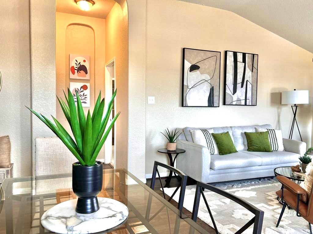 ¡Bienvenido al alquiler de tus sueños! Esta encantadora casa de 4 dormitorios y 2 baños, ubicada en 11235 Silver Rose, en el corazón de San Antonio, Texas, ofrece la combinación perfecta de comodidad, estilo y conveniencia. Con 140 m² de espacio habitable bien diseñado, ¡esta moderna residencia está lista para recibirte a ti y a tu familia! Entra y descubre una sala de estar bellamente decorada que irradia calidez y elegancia. La sala cuenta con un sofá de color claro adornado con elegantes cojines verdes y blancos, acompañado de dos modernas sillas marrones que invitan a la relajación. El ambiente se complementa a la perfección con techos altos, obras de arte de buen gusto y una alfombra con motivos geométricos. La luz natural inunda el espacio, creando un ambiente acogedor tanto para reuniones como para noches acogedoras. El corazón de la casa es, sin duda, el comedor abierto con una llamativa mesa de mármol, ideal para cenas familiares y reuniones. Una atractiva decoración añade un toque de sofisticación, mientras que el acogedor sofá gris ofrece el lugar perfecto para relajarse después de un largo día. Tus aventuras culinarias te esperan en la cocina bien equipada con electrodomésticos de acero inoxidable, incluyendo microondas y lavavajillas. Ya sea para preparar comidas o disfrutar de refrigerios nocturnos, te encantará la comodidad de la lavadora/secadora, el internet de alta velocidad y los sistemas de calefacción/aire acondicionado. Esta casa admite mascotas, así que no dudes en traer a tus queridos gatos o perros (con cargo adicional). Disfruta del espacio al aire libre y del tranquilo vecindario familiar, con parques y escuelas cerca, lo que la hace perfecta para familias. Ubicada a solo minutos de centros comerciales, restaurantes y áreas recreativas, desplazarte y socializar nunca ha sido tan fácil. Con las convenientes opciones de alquiler mes a mes, puedes disfrutar de flexibilidad y tranquilidad mientras te instalas en tu nuevo hogar. No pierdas la oportunidad de hacer tuya esta impresionante propiedad. ¡Programa una visita hoy mismo y disfruta de todas las comodidades que ofrece esta encantadora propiedad en alquiler en San Antonio!