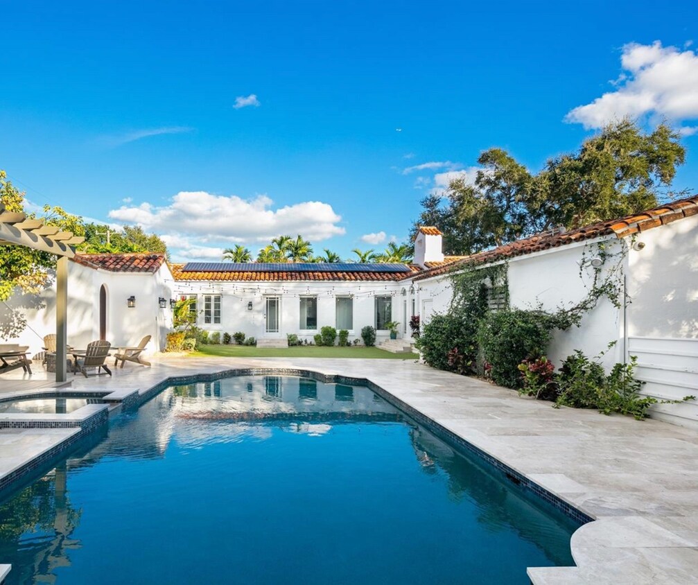 Encantadora casa de estilo mediterráneo disponible para alquilar en Miami Shores. Esta casa unifamiliar ofrece 4 dormitorios y 2 baños y medio en la casa principal, además de una casa de huéspedes independiente de 1 dormitorio y 1 baño. Un exuberante patio trasero con piscina y jacuzzi, perfecto para el entretenimiento. 2 garajes. Primer mes, último mes y depósito de seguridad. Solo consultas serias.