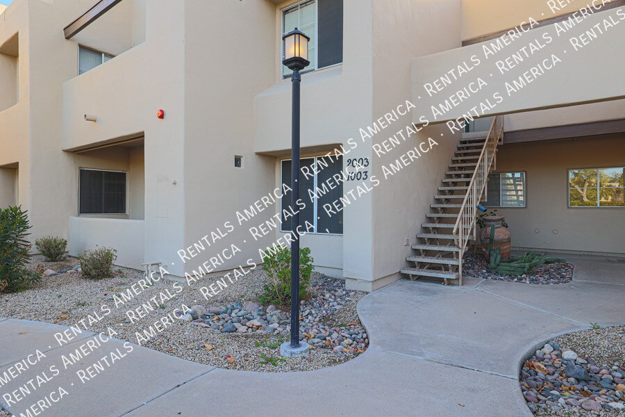 Coming Soon, Available April 1st. Stylish plank tile flooring and updated lighting & fixtures throughout. Kitchen features stainless steel appliances, built-in microwave, granite countertops with breakfast counter and pantry closet. Master suite includes bay window with front view, large walk-in closet & bathroom. Spacious patio with sun-protected shade, storage room and plenty of room for plants. Resort-style amenities: 2 pools/spa, tennis, Rec Room & Fitness Center. Near Honor Health Hospital and the 101. Just minutes to Renowned Golf Courses and Fine Dining, One Time Admin Fee: $300, Pet Deposit: $300/pet (if applicable), Service Fee 2%. $39/month Resident Benefits Package, Helping Heroes Discount Available! Cats Allowed Ceramic Tile Community Pool Dogs Allowed Dryer Pets Allowed Vinyl Washer
