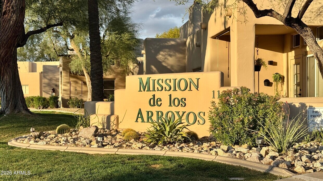 Este condominio en excelente estado, disponible para alquilar, se encuentra en la prestigiosa comunidad de Mission Del Arroyos, a pocos minutos de la autopista Loop 101, tiendas y restaurantes. Esta unidad de esquina en la planta baja ofrece 2 recámaras y 2 baños, con abundante luz natural durante todo el día. La sala de estar y el comedor cuentan con una acogedora chimenea de leña, creando un espacio confortable para relajarse. La espaciosa recámara principal tiene un vestidor y una amplia ducha. Después de un largo día, salga a su patio cubierto y disfrute de un momento de tranquilidad bajo el cielo de Arizona. La comunidad ofrece comodidades estilo resort, que incluyen canchas de tenis iluminadas, gimnasio, casa club, 2 piscinas/spa y senderos para caminar y andar en bicicleta.