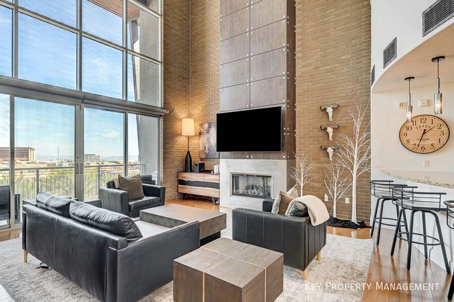 Lujoso loft en el último piso de C2 Lofts con techos altos, abundante luz natural y hermosas vistas de la ciudad de Las Vegas y el Strip. Esta residencia de dos plantas cuenta con ventanales de piso a techo con persianas eléctricas, un amplio balcón privado y una cocina de chef con electrodomésticos de acero inoxidable de alta gama de Wolf, Viking y Asko, además de una barra de desayuno de granito extragrande. Los residentes disfrutan de dos plazas de aparcamiento cubiertas asignadas, trastero seguro, acceso a puntos de carga para vehículos eléctricos y una terraza en la azotea con barbacoa, fogata y vistas panorámicas de la ciudad, el Strip y las montañas. Ubicado a solo minutos de Downtown Summerlin, Red Rock Casino, City National Arena y Las Vegas Ballpark, con servicios comunitarios que incluyen piscina, spa, parque y senderos para caminar.