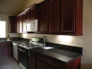 Primer plano de las encimeras de granito de la cocina.