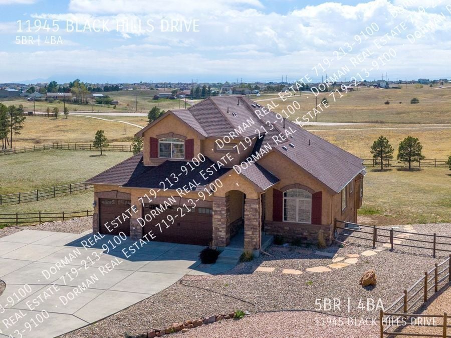 ---- PROGRAME UNA VISITA EN LÍNEA EN: ---- Bienvenido a esta increíble casa ubicada en Peyton, CO. Situada en un lote enorme en Falcon, esta propiedad ofrece impresionantes vistas de las montañas. Con 5 dormitorios y 3.5 baños, hay mucho espacio para todos. Los acabados de alta gama y los techos abovedados crean un ambiente elegante y espacioso en toda la casa. Disfrute de la comodidad de tener instalaciones de lavandería en el dormitorio principal, lo que hace que las tareas del hogar sean muy fáciles. Acomódese junto a una de las múltiples chimeneas de gas en las noches frías o relájese en una de las múltiples terrazas, perfectas para el entretenimiento al aire libre. El bar con fregadero en el sótano terminado con salida al exterior es ideal para organizar reuniones con amigos y familiares. Los entusiastas del cine adorarán la sala de cine dedicada, que brinda la mejor experiencia cinematográfica. Estacione sus vehículos con facilidad en el garaje para 3 autos. El patio cercado ofrece privacidad y seguridad, lo que lo convierte en un gran espacio para que los niños jueguen. Los electrodomésticos de acero inoxidable en la cocina agregan un toque de modernidad. Por último, no se pierda las impresionantes vistas a la montaña que se pueden disfrutar desde varias zonas de la casa. Esta casa lo tiene todo: combina comodidad, estilo y funcionalidad. No pierda la oportunidad de convertirla en la casa de sus sueños. Contáctenos hoy mismo para programar una visita. Consulte nuestro manual de solicitud copiando y pegando el enlace a continuación en su navegador.