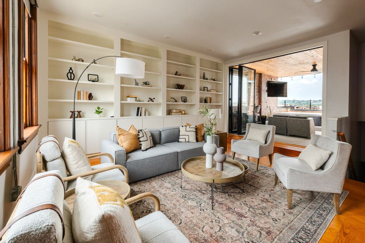 La tarifa anunciada de $9,247 al mes es el precio más bajo disponible, basado en una estadía de 30 días con fecha de mudanza el 6 de agosto de 2026. Las tarifas varían según la duración de la estadía, la temporada y otros parámetros. Para conocer el precio exacto y otros componentes del precio, visite nuestro sitio web e ingrese las fechas de entrada y salida deseadas. La tarifa se aplica al facturarse por adelantado; puede ser mayor si se factura en varios pagos. Siéntase como en casa en este exquisito penthouse de 3 habitaciones y 2.5 baños cerca de Washington Park, perfecto para una estadía en un lugar privilegiado. Ubicado en el 4.º/5.º piso, el acceso a la propiedad implica una cantidad proporcional de escalones. Cuenta con acceso por ascensor, cocinas y baños de lujo, y una de las mejores terrazas de la ciudad. Este penthouse está diseñado para brindar la máxima comodidad, estilo y conveniencia. Su espaciosa distribución incluye un dormitorio con cama king size y dos dormitorios con cama queen size, cada uno con un baño cercano. La suite principal cuenta con un impresionante baño con elegantes acabados, ducha a ras de suelo y grifería de alta gama. El segundo baño también cuenta con una lujosa ducha a ras de suelo y bañera. La cocina está equipada con lujosas encimeras de mármol, electrodomésticos de lujo, una enorme isla y comedor para ocho personas. Disfrute de impresionantes vistas de la ciudad desde el hermoso patio de la azotea, un remanso de paz para relajarse en el jacuzzi o entretenerse. Aparcar es muy fácil gracias al pase incluido al Washington Park Garage para un vehículo. Hay aparcamiento de pago disponible para vehículos adicionales. Está a pocos pasos de los mejores restaurantes, bares y del tranvía, con el estadio TQL y las boutiques a un corto paseo. Ubicado en Over the Rhine, el distrito gastronómico y de ocio de Cincinnati, esta ubicación es inmejorable para quienes buscan explorar. Hay más de 100 cafeterías, bares, restaurantes y parques a poca distancia a pie. La parada de tranvía más cercana está a unos 10 pasos de la puerta y es gratuita. Se encuentra a 2 minutos en coche del centro/Distrito Financiero Central, a 7 minutos del Great American Ballpark y del Estadio de los Bengals (Paycor Stadium), y a 10 minutos en coche del Conservatorio Krohn (jardín botánico). El Parque Washington, uno de los mejores parques de Cincinnati, está a solo dos manzanas. Las fiestas y la música amplificada están estrictamente prohibidas sin consentimiento previo por escrito. Según el Código Revisado de Ohio y el código municipal de Cincinnati, organizar una fiesta no autorizada se considera allanamiento ilegal y se pueden presentar cargos. El horario de silencio es de 22:00 a 8:00. Si no se respeta la solicitud, su reserva se cancelará sin reembolso. No se permite fumar ni encender ningún objeto en esta propiedad, incluyendo tabaco, marihuana, incienso, velas ni narguile. La limpieza de material biológico humano tendrá un coste mínimo de 300 $. Si se descubren mascotas después del incidente, se aplicará un coste de 300 $ por mascota no autorizada por noche. Se aplicará un coste de 170 $ por cambio de llave no devuelta. Las unidades que se encuentren con cantidades excesivas de residuos, en completo desorden o destrozadas estarán sujetas a un cargo adicional de limpieza de $200 o al costo real de la limpieza, el que sea mayor. Las estancias superiores a 14 días están sujetas a un cargo adicional de limpieza profunda de $120. Si se incurre en cargos de seguridad, bomberos, policía u otros costos relacionados con su comportamiento en la propiedad, se le facturará el costo, con un cargo mínimo de seguridad de $150. Número de registro: STR Reg ID #404709 [SI]
