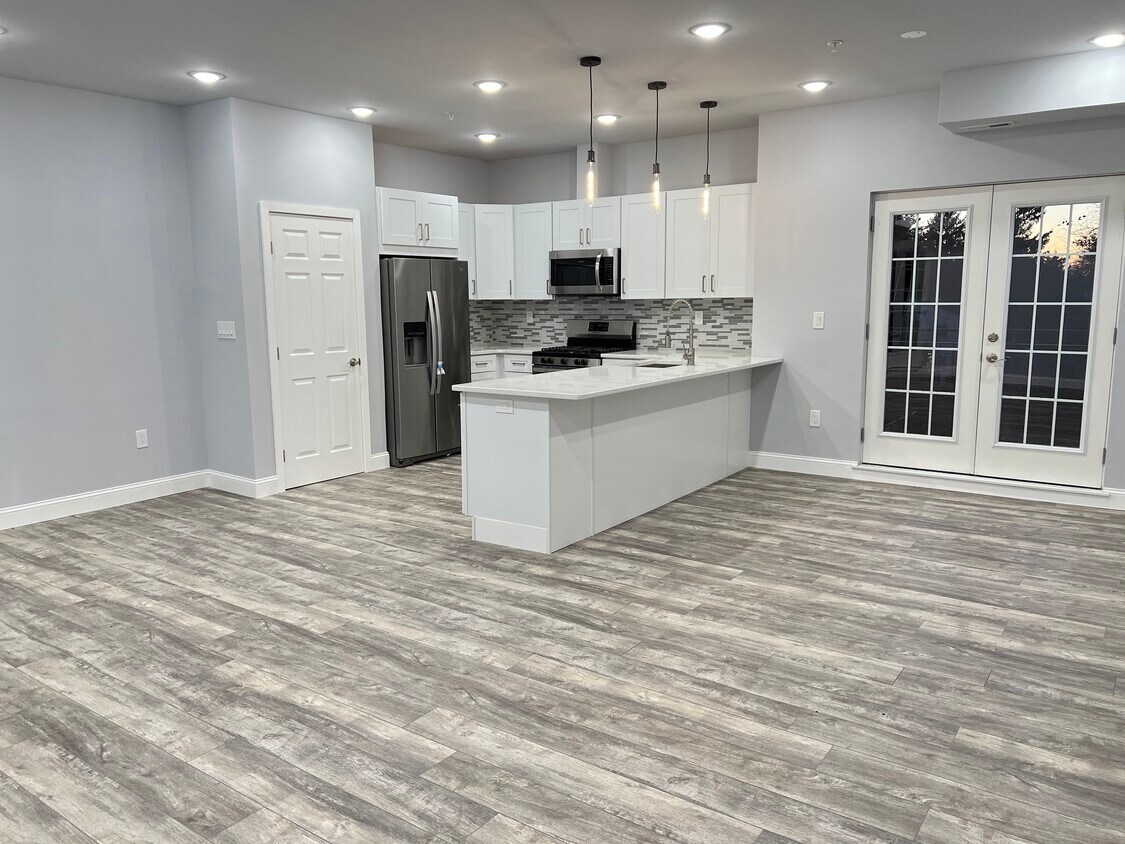 Cocina, comedor, sala de estar con balcón completo