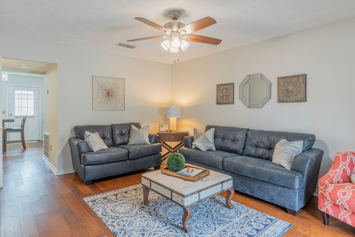 Hermoso complejo de casas adosadas recientemente renovado de 2 dormitorios y 2,5 baños, ubicado en una zona tranquila y segura, a solo 7 minutos de la Facultad de Veterinaria de la MSU y del campus de la Universidad Estatal de Mississippi, el Distrito Cotton y el centro de Starkville. Este hermoso y bien mantenido complejo es propiedad de un residente de Starkville, quien se enorgullece de brindar a sus inquilinos un lugar que disfrutan llamando "hogar". Nuestra comunidad es tranquila, segura y acogedora, y está compuesta principalmente por estudiantes de posgrado, profesionales y similares. Ofrecemos estacionamiento gratuito justo afuera de cada casa adosada, servicio de recolección de basura gratuito dos veces por semana frente a su puerta y un excelente servicio de mantenimiento. Somos un complejo de propiedad y administración privadas. Todas las unidades están actualmente alquiladas, por lo que no puedo ofrecer visitas guiadas; sin embargo, las fotos representan las unidades con precisión. Todas las unidades se remodelaron simultáneamente y cuentan con los mismos electrodomésticos, etc., que se ven en las fotos. Las opciones de tipo de unidad incluyen sin amueblar con patio privado, sin amueblar con patio privado cercado o completamente amueblado con patio privado. Actualmente solo tenemos 1 unidad disponible para el período de arrendamiento 2024-2025; no está amueblada y está disponible para mudarse a partir del 6 de agosto.
