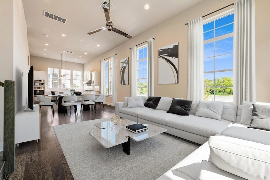 ¡Vive, trabaja y diviértete en el Distrito South Shore! Casa adosada "Brownstone" de 4 dormitorios y 4 baños y medio, a pocas cuadras de Town Lake, Oracle, UT Shuttle y Emo's. Terraza en la azotea, electrodomésticos Bosch, refrigerador, pisos de madera noble, diseño abierto con sala de juegos o segunda sala de estar. Techos de 3,6 metros en el comedor y puertas de 2,4 metros. Iluminación LED, calentador de agua sin tanque, garaje para 2 autos. Toma de corriente para vehículos eléctricos en el garaje. Unidad esquinera con ventanas altas que dejan entrar la hermosa luz natural, cortinas incluidas. Vistas panorámicas a Town Lake desde el dormitorio, balcón y sala de estar del 4.º piso. Comunidad privada. Plano incluido en las fotos. Comunidad con cierre y salida.