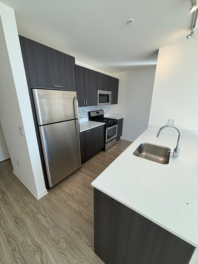 Disfrute de una vida de lujo en este hermoso apartamento de 1 dormitorio con vistas al sur. Esta unidad cuenta con balcón, ventanas de piso a techo, lavadora y secadora, y mucho más. La moderna cocina está equipada con una isla, elegantes encimeras de granito y electrodomésticos de acero inoxidable. El espacioso dormitorio ofrece un vestidor y espacio para una cama de cualquier tamaño. El edificio está diseñado para su comodidad y relajación, con servicio de portero las 24 horas. Manténgase activo en el gimnasio o reciba a sus amigos en el patio al aire libre con parrillas y fogatas.