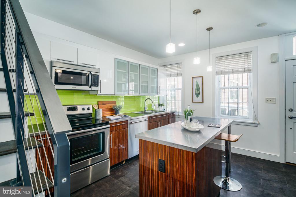 ¡Mírate en esta fantástica casa adosada de 3 pisos, 2 habitaciones y SALA DE ESTAR con encanto del viejo mundo y estilo moderno, a solo unos pasos de Broad Street! Con fácil acceso al transporte público y a poca distancia de todo lo que Filadelfia tiene para ofrecer, esta casa céntrica es el sueño de cualquier caminante en una calle tranquila en el corazón de la ciudad. La casa ofrece más de 1,630 pies cuadrados de espacio terminado recién mantenido en 3 pisos, 420 pies cuadrados adicionales de sótano sin terminar con lavadora y secadora, y espacios de patio al aire libre y terraza en la azotea. El primer piso cuenta con una cocina moderna con electrodomésticos y encimeras de acero inoxidable y pisos cerámicos, y una sala de estar/comedor abierta con pisos de madera y una puerta corrediza de vidrio que da al patio al aire libre. El segundo piso ofrece un dormitorio en el frente, vestidor y un baño grande con combinación de bañera y ducha, puerta corrediza de vidrio para la bañera, encimeras de piedra caliza y un mostrador de maquillaje. En el tercer piso, el espacioso dormitorio principal da al lado de la calle, con una sala de estar/oficina abierta (posible futuro dormitorio) y una puerta de vidrio que da a una hermosa terraza en la azotea, con vistas a un patio. El mantenimiento reciente del hogar incluye: un techo nuevo instalado en abril de 2022 (con todas las capas anteriores del techo eliminadas), alfombras nuevas en el segundo y tercer piso, accesorios nuevos para bañera/ducha y pintura nueva en todos los espacios terminados.