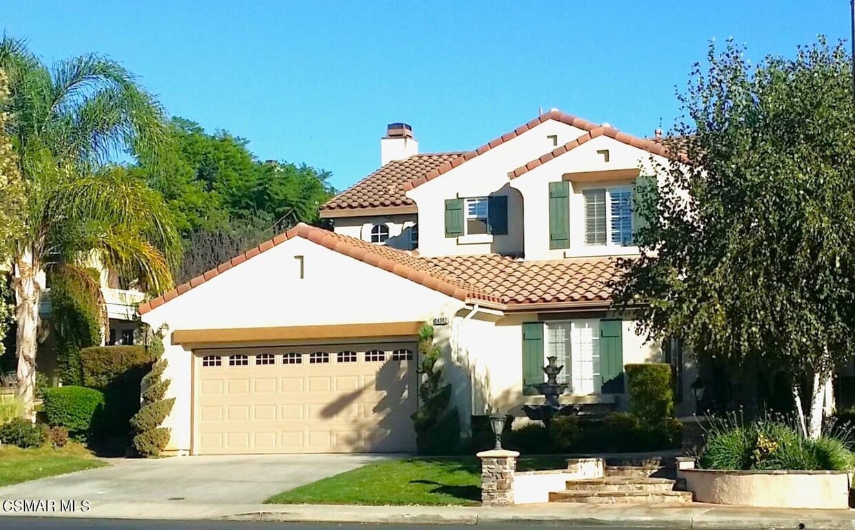 Luz solar brillante, casa de 2 pisos, hermosa comunidad privada de Moorpark. Techos altos, alfombras en las habitaciones en el piso superior y hermosos pisos de madera en todas partes. 3 dormitorios arriba y oficina/estudio abajo, todos con contraventanas tipo plantación. Chimenea en la sala familiar con centro multimedia incorporado. La cocina tiene encimeras de granito e isla central. La suite principal tiene vestidores dobles, con estantes y gabinetes empotrados. El baño incluye dos lavabos y una bañera de hidromasaje. Cuarto de lavado ubicado arriba, con fregadero. Garaje adjunto para 2 autos, con gabinetes empotrados y mucho espacio de almacenaje. El patio trasero está hermosamente mantenido, con barbacoa incorporada y brasero de piedra. Lo sentimos, NO SE ADMITEN MASCOTAS