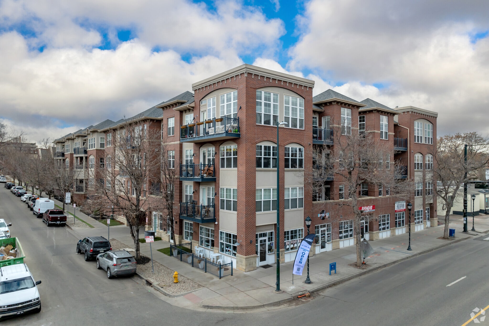 Chamberlin Heights is a four-story condominium building located in the vibrant Congress Park neighborhood of Denver, Colorado. Completed in 2005, this building features 60 units and offers a blend of modern amenities and classic charm. The building's brick facade and large windows create a welcoming atmosphere, while the retail spaces on the ground floor add convenience for residents.