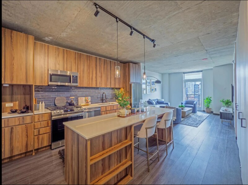 ID de la propiedad: 2402496 Una casa luminosa y espaciosa de 2 dormitorios y 2 baños en el corazón de Fulton Market, esta residencia combina la comodidad moderna con una estética pulida y vanguardista, ideal para la vida urbana. El diseño de concepto abierto ofrece un amplio espacio para relajarse y entretenerse, con ventanales de piso a techo que llenan el espacio de luz natural durante todo el día. Un balcón privado extiende su sala de estar al aire libre, creando el lugar perfecto para tomar un café por la mañana, tomar aire fresco entre reuniones o relajarse rodeado de la energía del vecindario. La cocina cuenta con elegantes gabinetes, encimeras de cuarzo y un conjunto completo de electrodomésticos de acero inoxidable, mientras que la lavadora y la secadora en la unidad agregan comodidad diaria. Ambos dormitorios están cuidadosamente separados para mayor privacidad, y cada baño está terminado con accesorios contemporáneos y amplio espacio de almacenamiento. Los residentes disfrutan de acceso a una colección seleccionada de comodidades diseñadas para el trabajo, el bienestar y la conexión: piense en salones de coworking, espacios de fitness, áreas sociales y retiros al aire libre elevados. A pasos de los aclamados restaurantes, cafés, boutiques y opciones de transporte de Fulton Market, esta casa ofrece una combinación perfecta de estilo, comodidad y ubicación en uno de los vecindarios más buscados de Chicago.