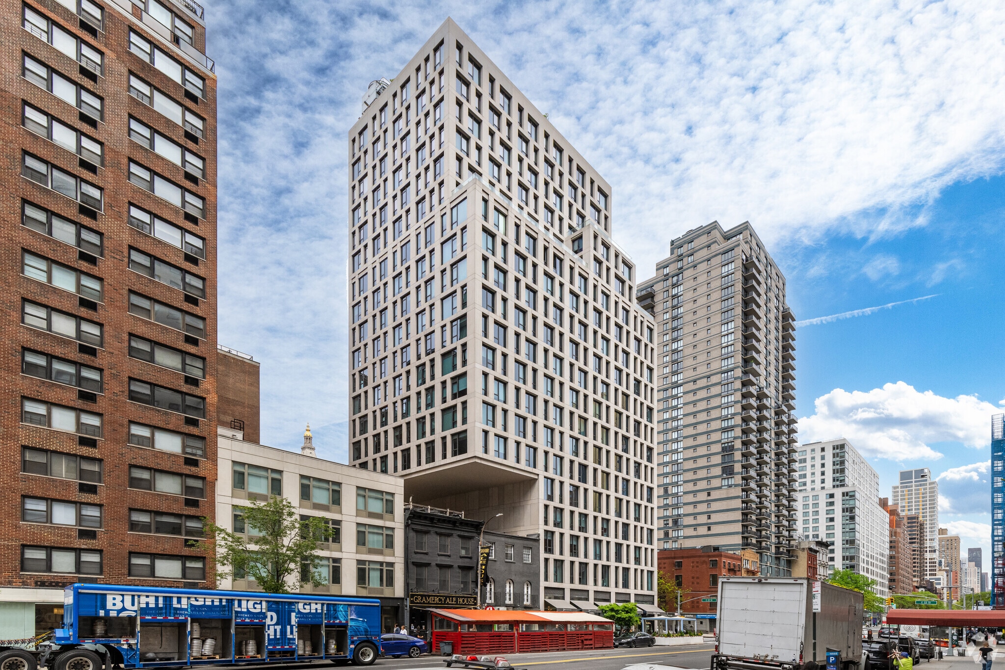160 E 22nd Street, a contemporary condominium in the coveted Gramercy Park neighborhood, offers a blend of sophistication and urban convenience. Completed in 2014 by renowned developer Toll Brothers, this 21-story building houses 81 residences. The structure's clean lines and minimalist facade reflect its modern sensibility, while its location places residents at the center of one of Manhattan's most vibrant and historic areas. With its proximity to iconic Gramercy Park and a host of cultural amenities, 160 E 22nd Street provides an ideal base for those seeking a luxurious urban lifestyle.