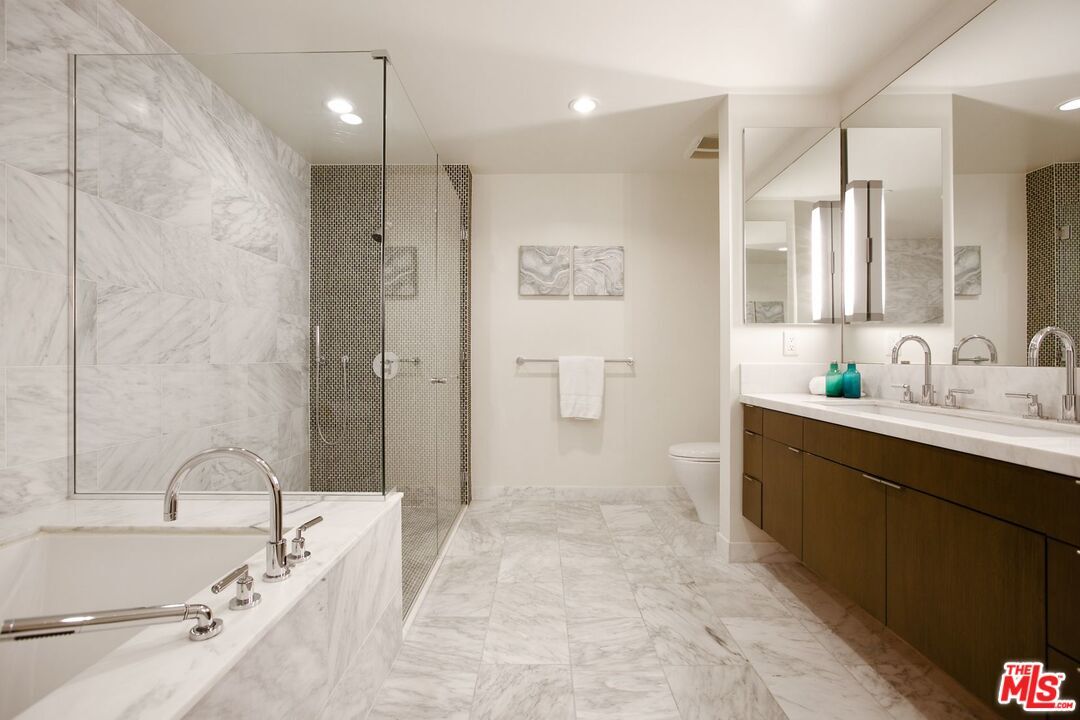 fabuloso MODELO en esquina, unidad de una sola planta, unidad entregada con máxima privacidad, vistas al parque Tongva. La cocina diseñada por Marmol Radziner cuenta con encimeras/isla de cuarcita, gabinetes de roble y electrodomésticos Thermador. Terraza al aire libre, increíbles pisos de madera de roble en todas partes, ventanas de doble panel de calidad en todas las habitaciones con persianas. Lujoso baño estilo Master Spa relleno de mármol con bañera y ducha independientes. Calle peatonal MINORISTA con Rokin Romman y café Starbucks. ¡Este es el estilo de vida URBANO! El edificio cuenta con conserje las 24 horas, salón en el puente elevado con cocina, chimenea y vista al mar.