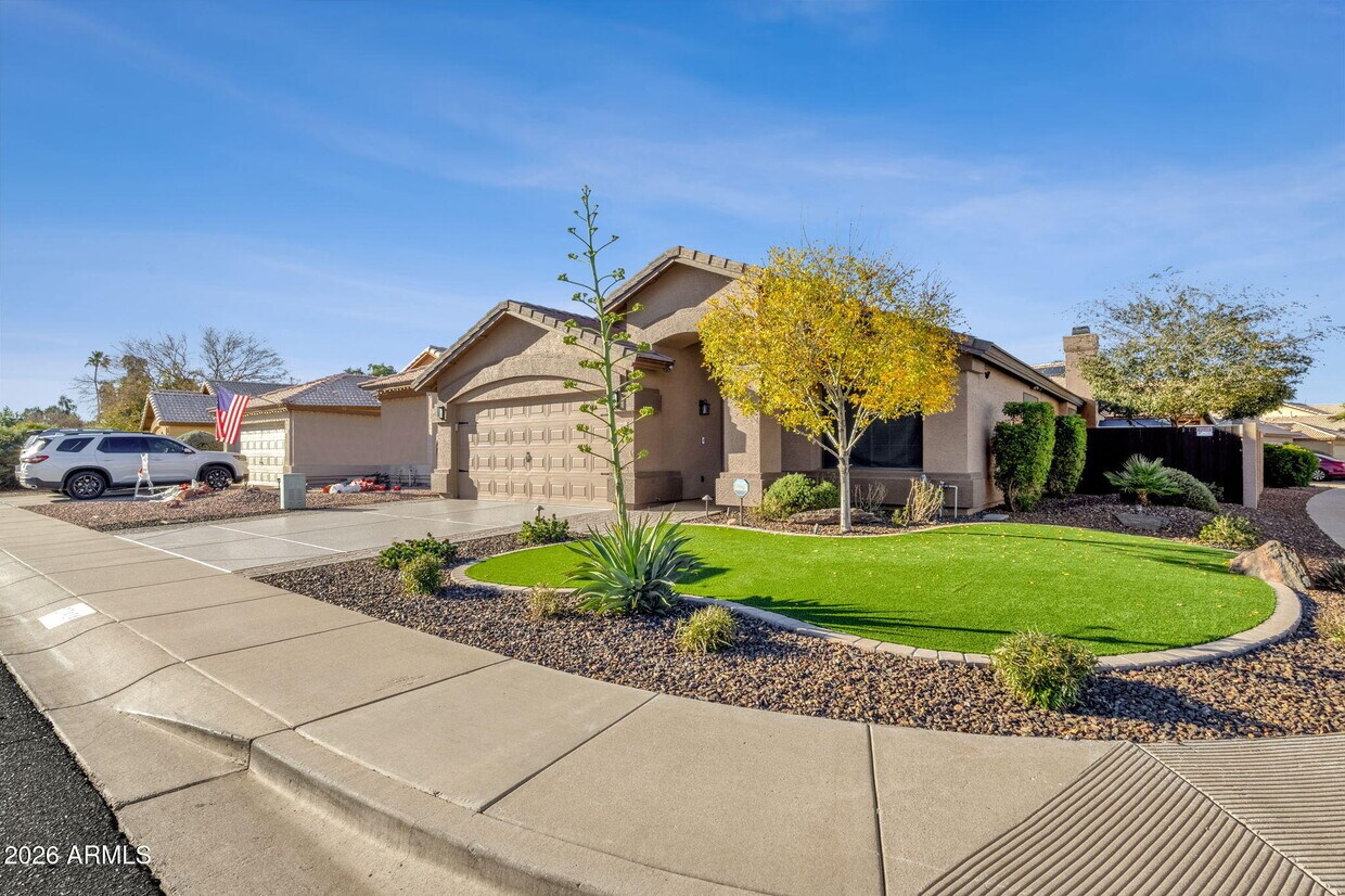 La vida en Arizona en su máxima expresión con este oasis en el patio trasero. Disfrute de sus fines de semana al aire libre en un cenador cubierto con mininevera, parrilla, rociadores y hermosos muebles de exterior. Cuelgue un televisor en el soporte de pared exterior preinstalado. El patio trasero cuenta con piscina, jacuzzi y una gran casa de juegos para niños o un pequeño estudio. La casa cuenta con techos con fallas, pintura neutra en toda la casa, sala de estar y comedor formales al frente, cocina abierta a la sala familiar y chimenea. El garaje tiene piso de epoxi y amplio espacio de almacenamiento. Agua potable ilimitada, fresca y deliciosa, proporcionada por un sistema de ósmosis inversa y agua salada de alta gama. ¡El alquiler incluye el mantenimiento de la piscina y el jardín!