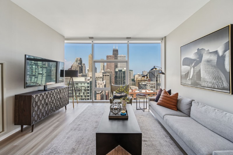 ID de la propiedad: 2363267 ASPECTOS DESTACADOS DE LA PROPIEDAD - STREETERVILLE • Excelente ubicación en Streeterville a pasos del lago, el río y Magnificent Mile • Camine hasta Whole Foods, AMC Theatre, Nordstrom, Eataly y los mejores restaurantes • Fácil acceso a la línea roja de CTA, Lake Shore Drive y Lakefront Trail • Piso completo de bienestar con gimnasio, spa y baños de vapor • Piscina cubierta de 15 metros con un tranquilo salón en la terraza • Club para residentes con sala de juegos, estaciones de parrilla y salones interiores y exteriores • Spa de hidroterapia en la azotea con fogatas y áreas de parrilla • Área para perros en el lugar • Personal de seguridad en la puerta las 24 horas • Edificio 100% libre de humo • Estacionamiento en garaje disponible (costo adicional) CARACTERÍSTICAS DEL APARTAMENTO • Pisos de bambú en las salas de estar principales • Baños con azulejos de porcelana • Dormitorios alfombrados • Gabinetes de cocina personalizados • Encimeras de granito y fregaderos bajo encimera • Electrodomésticos de acero inoxidable • Ventanas de piso a techo • Lavadora en la unidad y secadora • Grifería Grohe • Persianas de aluminio pulido • Aire acondicionado central