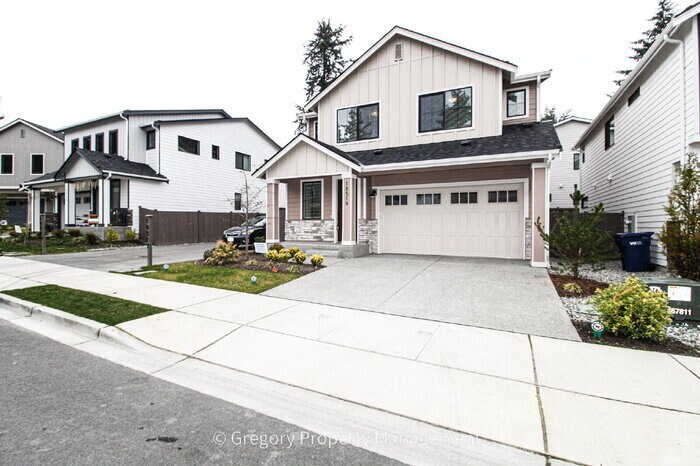 Nuevo y espacioso refugio de 5 habitaciones en Coyote Ridge, 3 baños completos, garaje para 2 autos, 2330 pies cuadrados, aire acondicionado, excelente ubicación en Bothell. ¡El servicio de transporte de Amazon está a poca distancia de la propiedad! * Las casas cuentan con lo último en acabados contemporáneos, pisos de tablones de lujo en todo el piso principal, techos de 9 pies * Impresionante cocina de chef con electrodomésticos de acero inoxidable, estufa a gas, encimeras de cuarzo, enorme despensa con puerta francesa e isla central con alero para taburetes de bar. * Gran sala de concepto abierto * El piso principal tiene un quinto dormitorio, una gran oficina en casa o sala de pasatiempos y está al lado de un baño completo, lo que lo convierte en una buena opción de dormitorio de invitados. * El dormitorio principal de la planta superior es lo suficientemente grande para todos los muebles tamaño king. * Baño en suite con dos lavabos, encimeras de cuarzo, bañera profunda y ducha separada. Amplio vestidor. * La habitación adicional/loft de la planta superior será un cine en casa o una sala de juegos perfectos. * Lavandería en la planta superior con lavadora y secadora incluidas. * El vibrante y pintoresco centro de Mill Creek está a aproximadamente 1.5 millas de distancia, con restaurantes y tiendas. * Espacio de almacenamiento adicional en toda la propiedad. * Patio trasero con jardín completamente cercado. * Servicio de transporte de Amazon con aire acondicionado disponible en la Iglesia Cristiana North Lake, ¡a pasos de la propiedad! *Ubicación conveniente a minutos de la 405, la I-5, tiendas, parques y más. Lo sentimos, no se admiten mascotas. Presentado por Gregory Property Management. Llame si tiene alguna pregunta de lunes a viernes de 9:00 a. m. a 5:00 p. m. Esta propiedad permite visitas autoguiadas sin cita previa. Contáctenos para obtener más información.