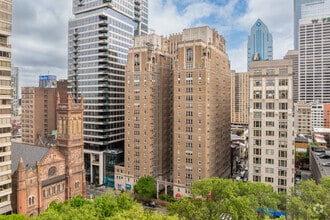 Rittenhouse Plaza stands as a distinguished landmark in Philadelphia's most coveted neighborhood. Completed in 1925, this 22-story Gothic Revival building houses 201 condominium units, offering residents a blend of historic charm and modern luxury. The building's prime location on Rittenhouse Square provides an unparalleled urban living experience, with easy access to the city's finest dining, shopping, and cultural attractions. Rittenhouse Plaza's timeless architecture, featuring pointed arches and intricate detailing, contributes to the iconic Philadelphia skyline while providing residents with a sense of living in a piece of the city's rich history.