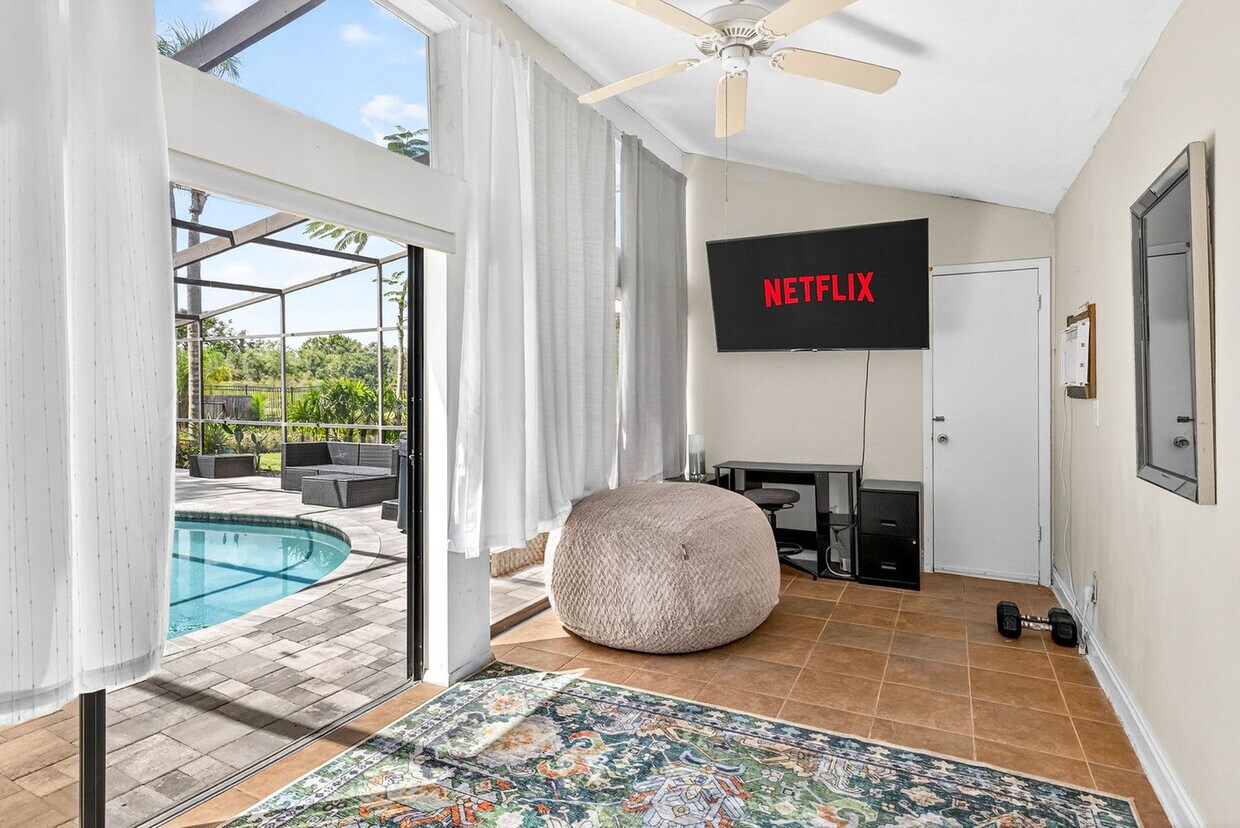 La tarifa anunciada de $6,106 al mes es la más baja disponible, basada en una estadía de 1 mes con fecha de mudanza el 11 de septiembre de 2026. Las tarifas varían según la duración de la estadía, la temporada y otros parámetros. Para conocer el precio exacto y otros componentes, visite nuestro sitio web e ingrese las fechas de entrada y salida deseadas. La tarifa se aplica al facturarse por adelantado; puede ser mayor si se factura en varios pagos. Siéntase como en casa en esta acogedora casa de 3 habitaciones con piscina, diseñada para que familias y amigos se relajen, reencuentren y creen recuerdos. Con casi 2,000 pies cuadrados de espacio habitable, una piscina con mosquitero y un jacuzzi burbujeante, es el lugar perfecto para una escapada a Florida cerca de Tampa, tiendas y playas de la Costa del Golfo. La casa es ideal para familias y grupos, con capacidad para 8 personas cómodamente, y cuenta con piscina privada con mosquitero, jacuzzi y solárium con amplio espacio para reuniones. Bienvenido a esta espaciosa casa de 3 dormitorios y 3 baños, donde la comodidad es lo primero. Si bien la decoración es sencilla, la casa destaca por su generosa distribución, sus prácticas comodidades y sus increíbles espacios exteriores que invitan a la convivencia. El dormitorio principal cuenta con una cama king size, Smart TV, vestidor, armario y baño privado. Los dormitorios de invitados incluyen una cama queen con armario y luz natural, y una litera de dos plazas, ideal para niños o amigos. El solárium adicional ofrece una cama extragrande, perfecta para relajarse o echarse una siesta junto a la piscina. La casa incluye 3 baños completos con bañera y ducha, una amplia sala de estar de concepto abierto con un acogedor sofá y Smart TV, comedor con capacidad para seis personas y una cocina con electrodomésticos y utensilios esenciales. Los espacios exteriores incluyen una piscina privada con mosquitero para disfrutar todo el día, un jacuzzi para relajarse después de un día explorando y un patio cubierto con asientos, ideal para comer y conversar junto a la piscina. Se pueden solicitar permisos para sesiones profesionales de vídeo o fotografía por un suplemento. Contáctenos para más información. Ubicada en Brandon, un tranquilo suburbio al este de Tampa, estará cerca de tiendas, restaurantes y actividades para toda la familia, a la vez que se encuentra a poca distancia en coche de Busch Gardens, el centro de Tampa, el Amalie Arena y las playas de la Costa del Golfo. Para su entretenimiento, el Anfiteatro MidFlorida Credit Union y el Seminole Hard Rock Casino están a solo minutos, lo que le brinda acceso a conciertos, vida nocturna y juegos de azar de primer nivel. El vecindario es tranquilo y residencial, ideal para quienes buscan un refugio relajante al final del día. La casa se disfruta mejor en coche, ya que hay estacionamiento disponible en la entrada para hasta 6 vehículos. Desde la casa, está a menos de 10 minutos del centro comercial Brandon Mall, a 15 minutos del Hard Rock Casino y del Anfiteatro MidFlorida, a 20 minutos del centro de Tampa y a unos 60 minutos de las playas de Clearwater y St. Pete. El Aeropuerto Internacional de Tampa está a solo 25 minutos. El registro de entrada comienza a las 4 p. m. y la salida a las 10 a. m. Las salidas después de las 10:00 a. m. tienen un cargo de $50. No se permiten fiestas ni eventos, y el nivel de ruido debe mantenerse por debajo de los 80 decibeles en todo momento. Está prohibido fumar en interiores y el uso de fuegos artificiales en cualquier lugar; existe una zona designada para fumar al aire libre, a 4,5 metros de la propiedad. Las infracciones relacionadas con fumar o la presencia de olor a humo pueden tener un cargo mínimo de $250 por remediación. No se permiten mascotas, y los animales de servicio sin supervisión y las mascotas de ESA incurrirán en una multa por mascota de $100 al mes. Cualquier control de plagas o daño necesario después de la visita puede resultar en multas adicionales. Se pueden instalar cámaras de seguridad exteriores y detectores de nivel de ruido para su seguridad, pero no se monitorean activamente. El mantenimiento de rutina es parte de la estadía, y es posible que vea técnicos de cuidado del césped, control de plagas o servicio de piscina en el lugar durante su estadía. El horario de silencio es de 10:00 p. m. a 8:00 a. m. Evite la música alta entre las 8:00 p. m. y las 8:00 a. m. Respete a sus vecinos absteniéndose de hacer ruidos fuertes o de comportarse de manera disruptiva. Solo se permite el acceso a la propiedad a los huéspedes registrados en la reserva. Si necesita más huéspedes, notifíquenoslo con antelación. El consumo de drogas ilegales conlleva el desalojo inmediato sin reembolso. Desactivar o retirar dispositivos de seguridad o cualquier tecnología conlleva el pago de una tarifa o la expulsión de la vivienda sin reembolso. El incumplimiento de cualquiera de las normas de la casa puede conllevar la expulsión de la vivienda sin reembolso. Informe siempre de cualquier daño o accidente con prontitud para obtener la devolución total del depósito de seguridad. Los huéspedes disfrutan de total privacidad durante su estancia, pero nuestro equipo está a solo un mensaje de distancia si necesita algo. Estaremos encantados de ofrecerle recomendaciones locales, ayudarle con sus preguntas o intervenir rápidamente si surge algún problema. Nuestro objetivo es ofrecerle una estancia sin contratiempos con la tranquilidad de saber que siempre cuenta con asistencia cercana. [SI]
