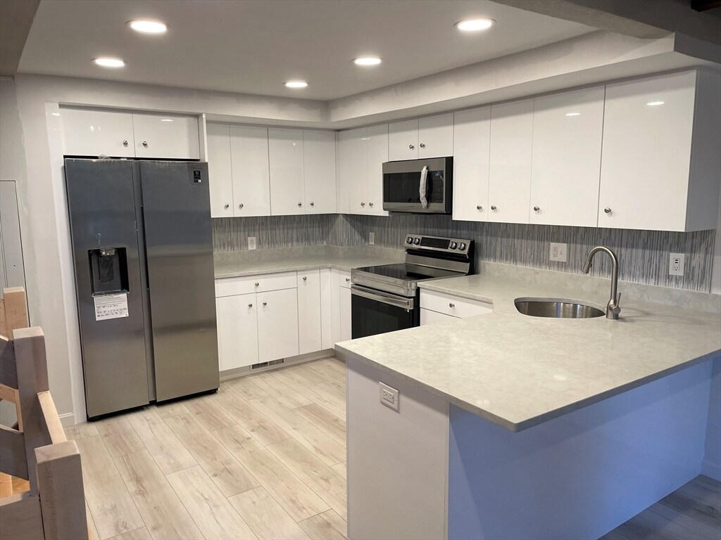 ¡No te conformes con vivir en un apartamento tipo caja! Eche un vistazo a esta casa adosada rústica contemporánea de dos dormitorios completamente renovada que cuenta con una moderna cocina de diseño con un conjunto de electrodomésticos de acero inoxidable y amplias encimeras de cuarzo. La espaciosa sala de estar tiene pisos de madera noble de estilo rústico más nuevos, vigas y postes a la vista toscos y un techo abovedado de skylite. El control deslizante de la sala de estar conduce a una terraza compuesta privada elevada. La suite principal tiene madera noble brillante y un techo abovedado con vigas de madera a la vista. La oficina/estudio en casa podría usarse como tercer dormitorio. ¡Dos baños completos! Diseño abierto alegre y luminoso, aire central, conexiones para lavandería en el apartamento, mucho espacio de estacionamiento fuera de la calle, cerca de tiendas y restaurantes, a una milla de la estación de tren South Station, directamente en la línea de autobús. Pequeño y tranquilo complejo de cuatro unidades. ¡Se muestra como nuevo! Las fotos son de hace dos años al finalizar la renovación. Actualmente inquilino ocupado. Sin cargo de alquiler para el agente de listado.