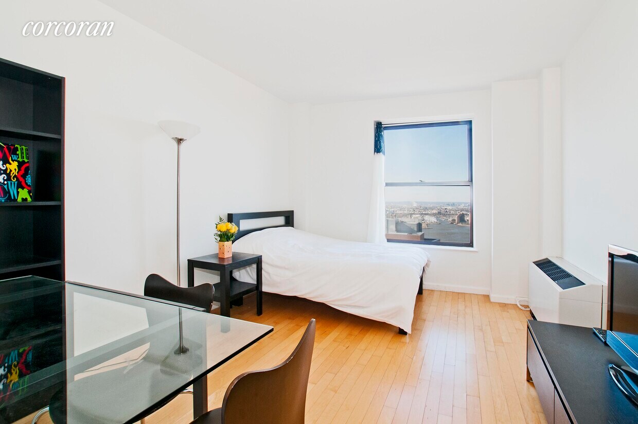¡Sin tarifas de agente inmobiliario! Disponible del de julio 27.This 38th piso acogedor estudio cuenta con techos altos y ofrece una vista al río Hudson y sin obstrucciones. El apartamento ofrece salas de estar y área de dormir y cocina y gran cantidad de armarios. Haz que tu hogar en NYC.Downtown Club es uno de los edificios más solicitada en FiDi. Las comodidades del edificio include:24 horas, portero, un 10.000 ft², gimnasio, sala de yoga, una terraza en la azotea, sala de cine y una sala de lavandería. Hay una tienda de delicatessen disponible las 24 horas en la planta baja. Fácil acceso a todas las principales líneas de metro: 1/4/5/R/W, y Path. Cerca de New World Trade Center, el World Financial Center y de Wall Street.