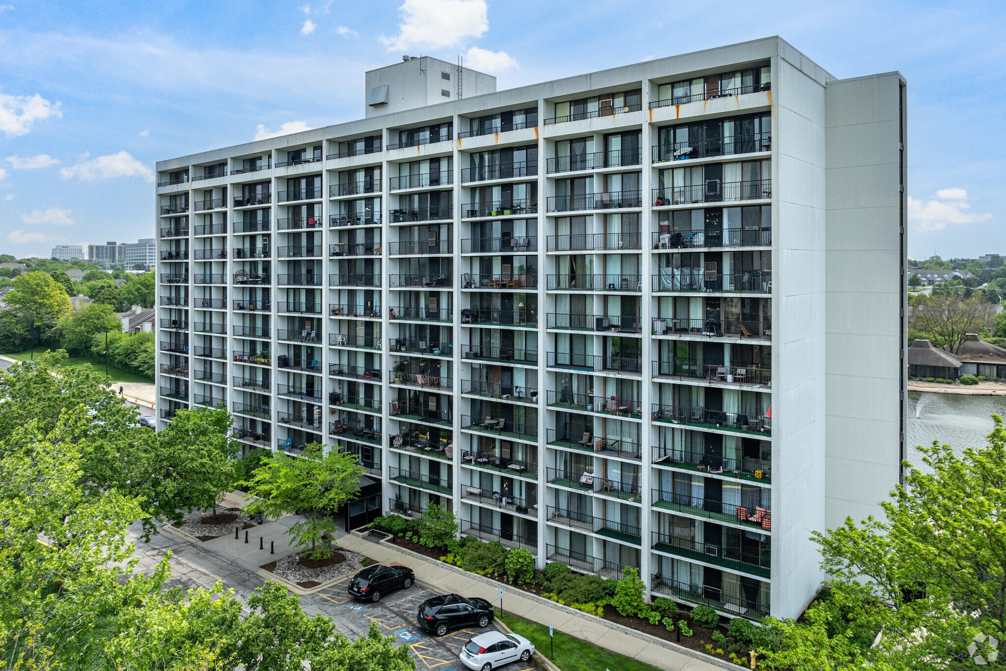 Cove Landing is a 12-story condominium building located in the South Lombard neighborhood. Completed in 1975, this building houses 151 units and offers a straightforward, modern design. Its grid-like facade of balconies and windows provides a clean and functional aesthetic. The building is centrally located with quick access to major highways and nearby amenities, making it a convenient place to call home.