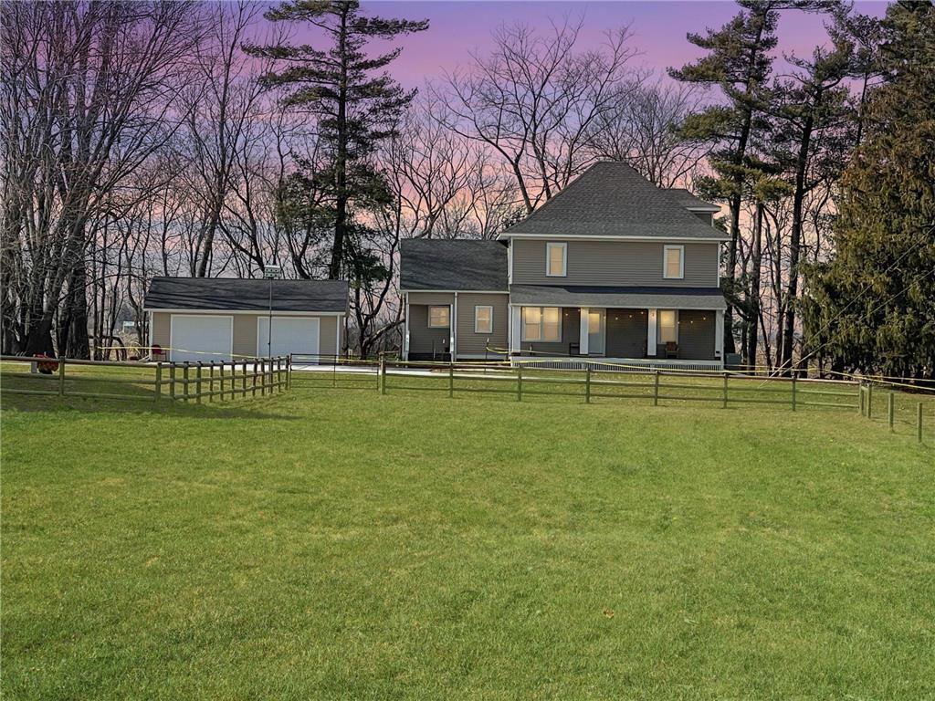 UNA HERMOSA GRANJA EN 5 HECTÁREAS DE SERENA CAMPIÑA. Adéntrese en un mundo donde el tiempo se detiene... donde cada rincón rezuma el encanto atemporal de antaño. Muchas de las características originales de esta hermosa granja 4BR /2BA han sido preservadas con cariño, ofreciendo una visión de una época pasada. Suntuosos pisos de madera y puertas de bolsillo originales. La comodidad de estar cerca de la ciudad lo espera sin las molestias de la grava. Y, sin embargo, te transportarás a un oasis tranquilo, lejos del ajetreo de la ciudad. Disfruta del garaje de dos paradas, recién construido en 2022. ¡Acepta el romance de la vida rural en esta joya histórica!