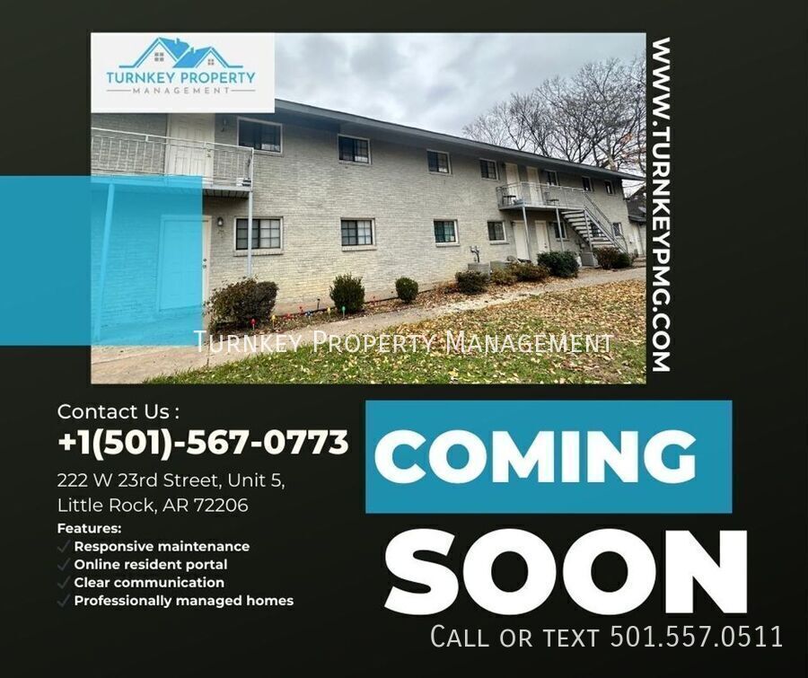 Excelentes apartamentos en el centro, ubicados en el Distrito Histórico de la Mansión del Gobernador. Electrodomésticos incluidos. A pasos de las tiendas y restaurantes de SOMA. Ubicado en el corazón del vibrante distrito histórico. Lavandería en el lugar. ¿Busca un mejor servicio al cliente de su administrador de propiedades? No busque más: Turnkey Property Management es la solución: una empresa local con sede en Little Rock. ¡Alquile en su zona y experimente la diferencia! Turnkey Property Management ofrece la posibilidad de mostrar su propiedad usted mismo para su comodidad. Turnkey Property Management no se anuncia en Craigslist; si compra una propiedad allí, es una estafa. Nunca le pediremos que transfiera dinero ni que solicite fondos a través de una aplicación de pago en su dispositivo móvil. En su lugar, se le pedirá que traiga una cuota de reserva de la propiedad a nuestra oficina. Tenga cuidado y contáctenos directamente si tiene alguna inquietud o pregunta.