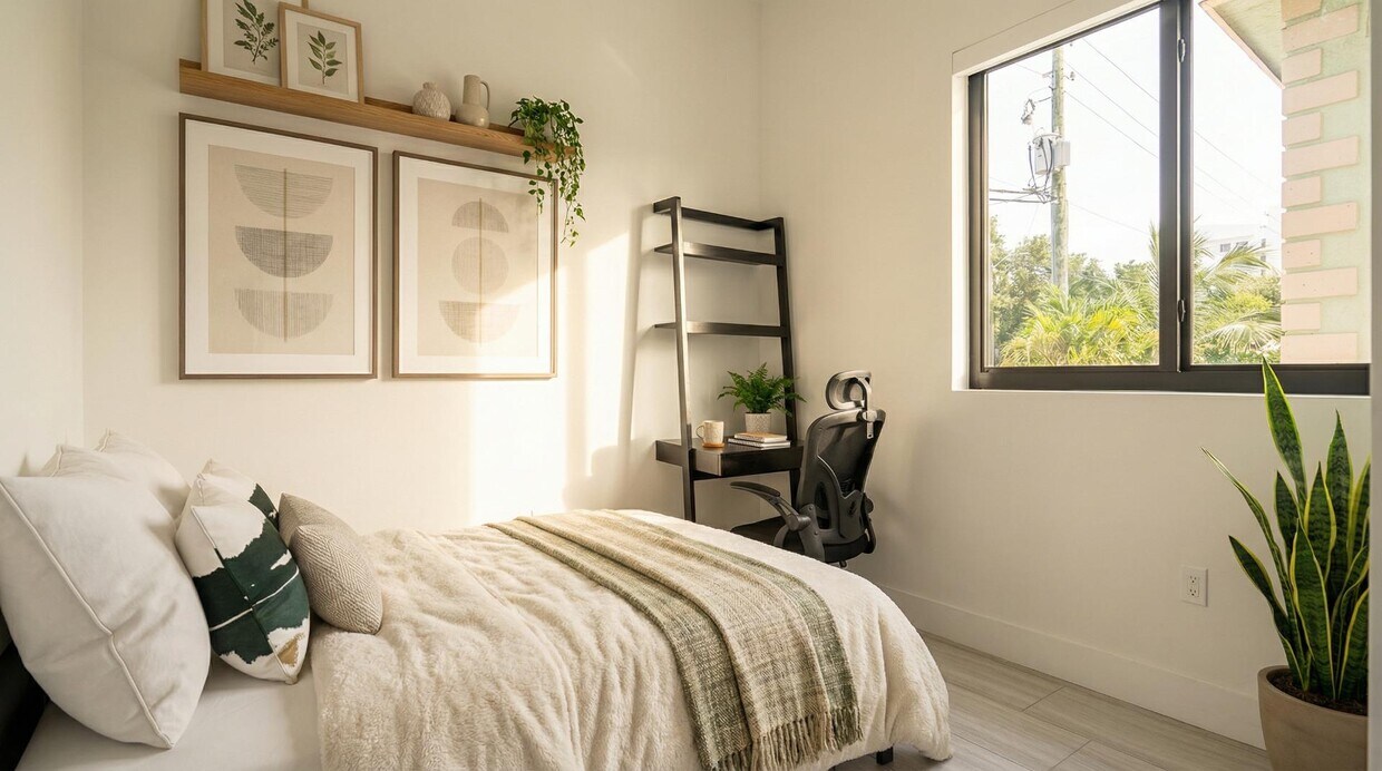 Descripción de la unidad: Apartamento a estrenar en East Little Havana, a pasos del río Miami. Cada habitación cuenta con baño privado, completamente amueblado con una cómoda cama matrimonial y colchón de espuma viscoelástica. Cada habitación cuenta con su propia cerradura electrónica inteligente, para que pueda relajarse en total privacidad. Trabaje cómodamente en la estación de trabajo y la silla ergonómica, mientras usa nuestro wifi ultrarrápido. Este apartamento de tres habitaciones y tres baños se encuentra en la planta baja. La cocina, el comedor y la sala de estar compartidos cuentan con techos de 3 metros de altura, lo que le da una sensación de luminosidad y amplitud. El edificio cuenta con control de acceso sin llave y un paquete de servicios todo en uno a un precio asequible, y está convenientemente ubicado cerca de la Facultad de Medicina Miller de la UM, el Distrito Médico de Miami, Brickell, el centro y mucho más. Precios sujetos a cambios. La unidad real puede variar ligeramente de las fotos. Solicite un recorrido en 3D. Bienvenido a Otto, su destino para una vida moderna en el corazón de East Little Havana...