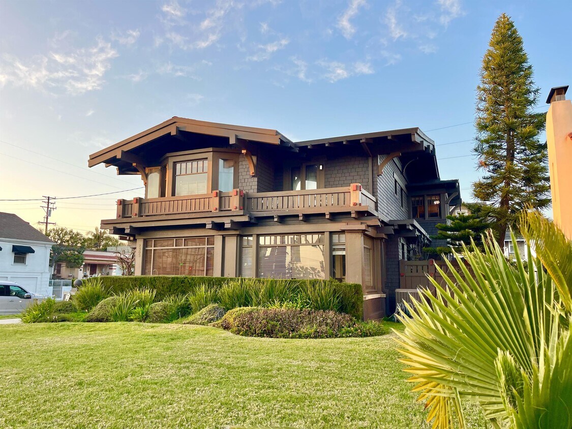 Durante más de 110 años, esta casa artesanal suiza ha sido un símbolo arquitectónico icónico del legendario barrio de Bluff Park. Esta magnífica joya se encuentra en la esquina del océano y Kennebec, frente al océano Pacífico en el corazón de Bluff Park. Bluff Park es uno de los distritos históricos más distintivos de Long Beach, con estructuras arquitectónicamente significativas y mansiones residenciales históricas a lo largo de la extensa costa del Pacífico de Long Beach. Atribuido a la famosa firma Meyer & Holler, el diseño y la artesanía de calidad se hacen evidentes inmediatamente después de la entrada. El hogar refleja elegantemente su estilo de bungalow en los elementos estructurales de madera pesada, el uso de paneles de tejas y colillas cuadradas simples de materiales naturales, y planos asimétricos informales combinados con techos a dos aguas y aleros anchos. Un gran porche de entrada delantero a la sombra de una vid de glicinia le da la bienvenida a su hogar y lo lleva al impresionante vestíbulo de entrada. Los paneles de secuoya transparentes seleccionados a mano y las vigas de madera color miel se extienden por los techos acofrados. El amplio primer piso de esta histórica casa cuenta con una enorme sala de estar formal con chimenea de ladrillo y una gran ventana panorámica con vista al Océano Pacífico, la isla Catalina y el Museo de Arte de Long Beach. Una amplia cocina equipada con una gran cantidad de gabinetes personalizados, un comedor formal con un hermoso bufet, una biblioteca y una sala de billar, un solárium y un espacio de oficina dedicado. Una atractiva escalera detallada lo lleva al segundo piso, donde una impresionante suite principal que abarca todo el ancho de la casa ofrece vistas al mar y a la isla. El dormitorio principal cuenta con una amplia sala de estar y estudio con chimenea, baño y ducha en suite y vestidor. Hay dos dormitorios adicionales, cada uno con sus propios baños. Patio trasero privado y tranquilo con un garaje separado para dos automóviles. Con una ubicación céntrica, cerca de restaurantes, lugares de entretenimiento y tiendas de primer nivel: The Bluffs, Broadway Corridor, Belmont Shore, Belmont Heights, Second Street, 2nd & PCH, 4th Street Retro Row, The Pike y Downtown Long Beach. Esta es una gran oportunidad para vivir en una icónica joya arquitectónica en el prestigioso vecindario de Bluff Park.