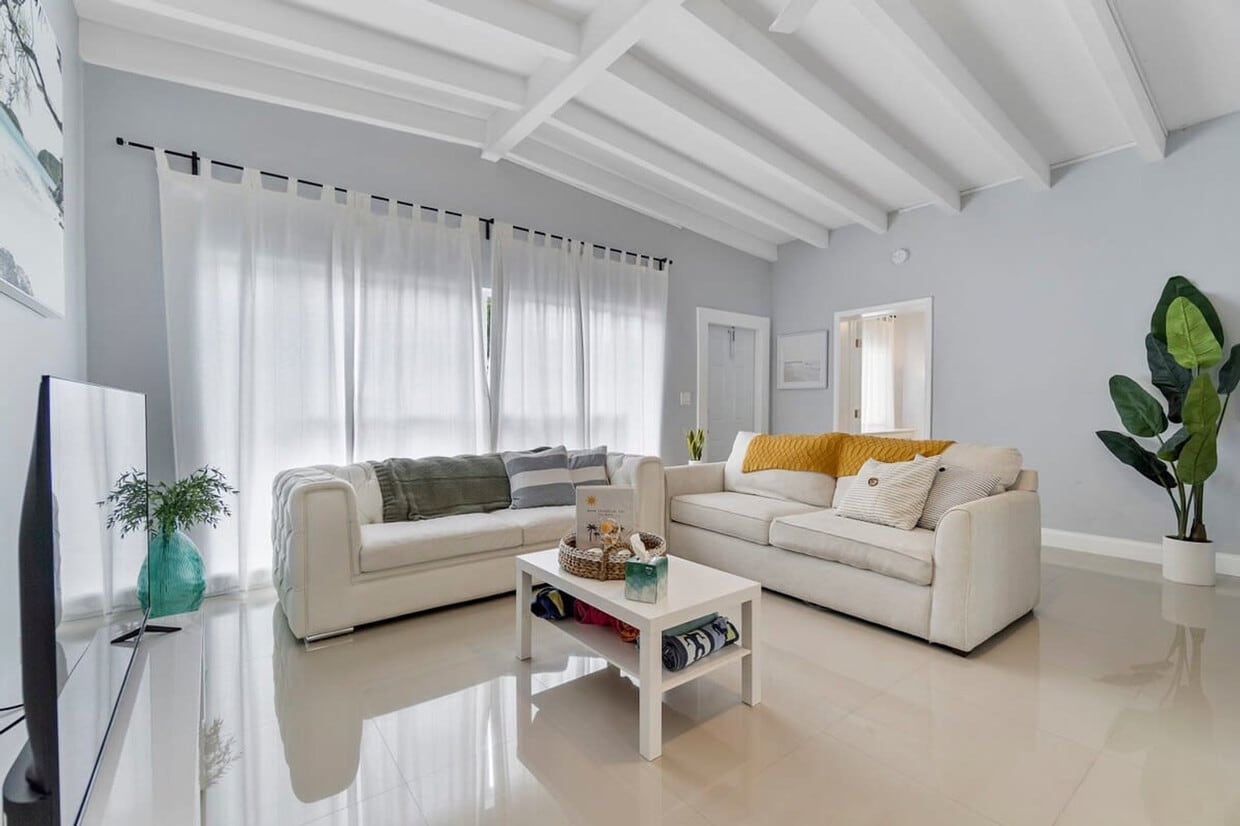 La tarifa anunciada de $6,016 al mes es la más baja disponible, basada en una estadía de 1 mes con fecha de entrada el 11 de septiembre de 2026. Las tarifas varían según la duración de la estadía, la temporada y otros parámetros. Para conocer el precio exacto y otros componentes, visite nuestro sitio web e ingrese las fechas de entrada y salida deseadas. La tarifa se aplica al pagar por adelantado; puede ser mayor si se factura en varios pagos. ¡Bienvenido a Sandbar, el destino vacacional de sus sueños en el soleado sur de Florida! Este apartamento de 3 dormitorios y 2 baños le ofrece todo lo necesario para una estadía inolvidable. Siéntase como en casa mientras disfruta de la piscina compartida o camina dos cuadras hasta la impresionante playa de Fort Lauderdale. Con electrodomésticos de alta gama y una cocina totalmente equipada, este apartamento puede alojar cómodamente a toda su familia. Sandbar forma parte de "Palm Paradise Inn-the Beach", que consta de tres unidades que comparten una piscina y un amplio patio trasero. Disfrute de la privacidad de su apartamento o socialice con nuevos amigos en las áreas comunes. El apartamento cuenta con lavadora y secadora, lo que lo hace ideal para estancias prolongadas. La cocina totalmente equipada es perfecta para preparar comidas caseras o grandes desayunos familiares. Se admiten mascotas con un cargo de $125 por estancia. Le rogamos que mantenga a sus mascotas alejadas de los muebles; se prefieren las que estén acostumbradas a usar jaulas. Disponemos de aparcamiento gratuito para su comodidad. Ubicado en la vibrante zona de North Fort Lauderdale Beach, este apartamento se encuentra a solo 5 minutos en coche de la famosa playa de Fort Lauderdale y a 10 minutos de Lauderdale by the Sea. El barrio es ideal para caminar y andar en bicicleta, con atracciones cercanas como el Café Martorano y el centro comercial Coral Ridge Mall, a 7 minutos en coche. Si bien se recomienda viajar en coche para explorar el sur de Florida, muchos lugares de interés locales son fácilmente accesibles a pie o en bicicleta. Esta propiedad consta de tres unidades, y el patio trasero, la parrilla y la piscina son espacios compartidos. El apartamento es privado y exclusivo para usted. No se permiten fiestas, huéspedes no registrados ni fumar en ninguna parte de la propiedad para mantener un ambiente familiar. Por seguridad, hay cámaras exteriores en la entrada principal, la entrada lateral y la piscina. No hay cámaras en el interior ni orientadas hacia el interior de la unidad. La piscina está climatizada a unos 20 grados por encima de la temperatura ambiente, con un máximo de 85 grados. Tenga esto en cuenta si reserva durante los meses más fríos de Florida. [SI]