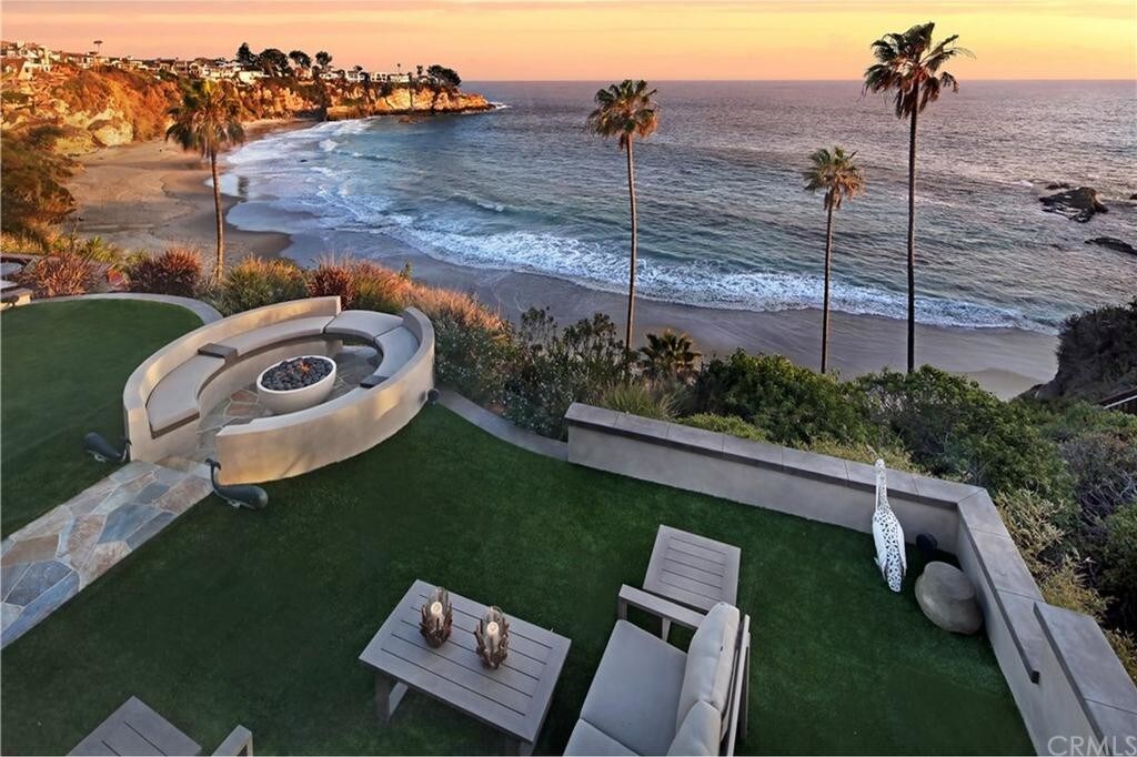 FURNISHED BLUFF FRONT OCEANVIEW NEW MINI- RESORT COMPOUND IN THREE ARCH BAY!! A GATE GUARDED COMMUNITY IN SOUTH LAGUNA. COMPLETELY REBUILD IN 2015. DRAMATIC SOFT CONTEMPORARY OCEAN FRONT HOME DESIGNED BY ARCHITECT BRION JEANETTE, TRULY A MASTER PIECE OF OPEN EXPANSIVE LIVING COMPLETE WITH ELEVATOR. LONG PRIVATE DRIVEWAY & CUSTOM PRIVACY GATED ENTRY. NO EXPENSE SPARED IN HARDSCAPE, LUSH LANDSCAPING AND AMENITIES. OCEANVIEWS CAPTURE YOUR ATTENTION FROM ENTRY THRU FRONT PATIO WITH WATERFALL, FIREPLACE, SPA AND COMPLETE OUT DOOR KITCHEN. STUNNING CUSTOM GLASS FRONT DOOR UNFOLDS INTO GREAT ROOM WITH CEILING TO FLOOR OCEAN VIEWS. MAIN LEVEL IS PAVED THRUOUT WITH QUARTZITE CREATING A SEAMLESS FEEL BETWEEN THE INTERIOR AND PATIOS. BIFOLD REAR GLASS DOORS LEND TO "RESORT STYLE" ENTERTAINMENT WITH OCEAN & CATALINA ISLAND VIEWS ON THE OVERSIZED COVERED OUTDOOR PATIO. TREASURE RELAXING HOURS OVERLOOKING THE PRIVATE BEACH AND COVE OF TAB. GENEROUS LOWER REAR LAWN, FIREPIT & SEATING, LOUNGE SPACE & ELECTRONIC SUNSHADES BECKON LINGER. MAIN FLOOR INCLUDES CHEIFS KITCHEN FOR EFFORTLESS DINING. SWEEPING KITCHEN CENTER ISLAND, TOP OF THE LINE APPLIANCES. OCEANVIEW DINING AREA , GREAT ROOM AND HIGH BAR. MAIN FLOOR MASTER SUITE WITH GLASS DOORS TO OCEANVIEW PATIO. DOWNSTAIRS 2 MORE OCEANVIEW ENSUITE BEDROOMS, GAME ROOM, ENTERTAINMENT SPACE WITH OVERSIZED TV AND WET BAR. GUEST SUITE ATTACHED TO MAIN LEVEL INCLUDES SEPARATE OFFICE. ELEVATOR FROM STREET LEVEL GARAGE TO MAIN FLOOR.