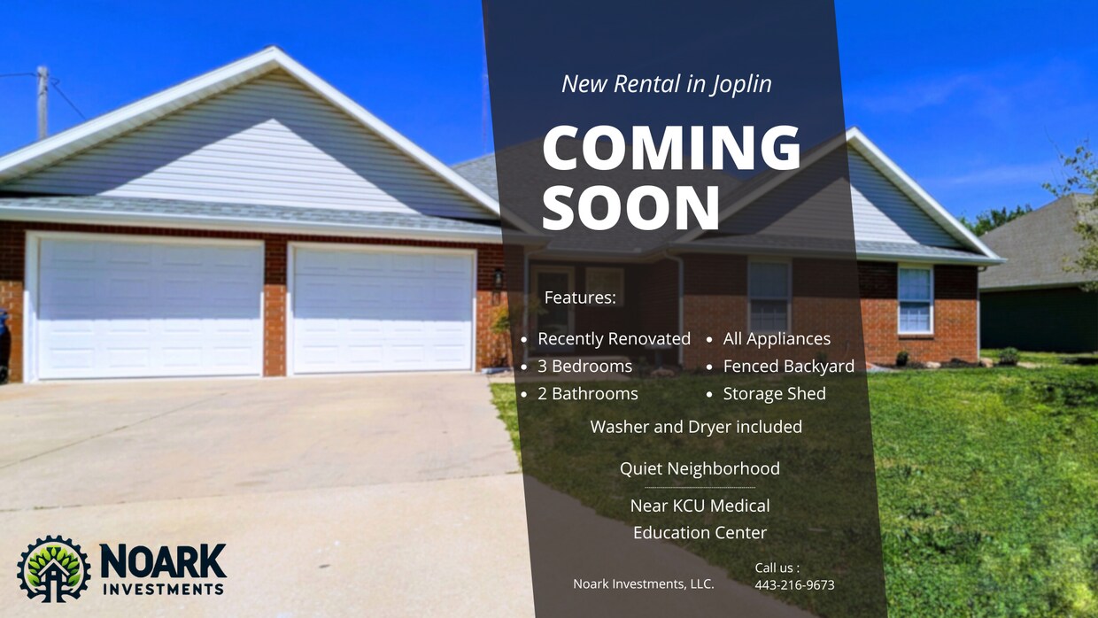 Bienvenido a esta hermosa casa renovada de 3 dormitorios y 2 baños en Joplin, MO, disponible en julio de 2025. Ubicada en un vecindario tranquilo y acogedor, a un paso del centro de educación médica de KCU, esta propiedad ofrece el equilibrio perfecto entre comodidad y tranquilidad. En el interior, la casa ha sido renovada significativamente. La cocina, con electrodomésticos de acero inoxidable nuevos, también cuenta con gabinetes de madera maciza, lo que le da una estética moderna y sobria. Si bien el jardín delantero añade un toque de belleza natural, mantiene una apariencia encantadora y sencilla sin requerir un mantenimiento excesivo. El espacioso dormitorio principal destaca por su armario doble y un amplio armario para ropa blanca. Un acogedor rincón dentro de la habitación ofrece un espacio versátil, ideal para una pequeña sala de estar o una oficina improvisada en casa. El baño principal complementa a la perfección esta suite, equipado con ducha, bañera y tocador con dos lavabos, lo que facilita la vida diaria con amplio espacio y comodidad. Las comodidades adicionales incluyen pisos de madera en toda la casa para un fácil mantenimiento, aire acondicionado central y calefacción central para garantizar comodidad durante todo el año. La propiedad también cuenta con un amplio garaje para dos autos y un cobertizo para mayor comodidad. En el exterior, el amplio patio trasero incluye un porche cubierto y cerrado, ideal para relajarse o entretenerse en cualquier clima. El amplio patio cercado ofrece privacidad y seguridad. Con un precio de $1,550 al mes con un depósito de seguridad equivalente, esta casa es una excelente opción en una ubicación privilegiada. Tenga en cuenta que los servicios públicos y el mantenimiento del jardín no están incluidos. Se admiten mascotas, pero se requiere un depósito adicional y una renta mensual por mascota. Para mantener esta casa en excelentes condiciones durante años, no se permite fumar dentro ni fuera de la propiedad. Todos los solicitantes son bienvenidos y estarán sujetos a una tarifa de evaluación que deberá abonarse al momento de la solicitud. Contáctenos si está interesado en hacer suya esta casa. ¡Su nuevo hogar le espera!